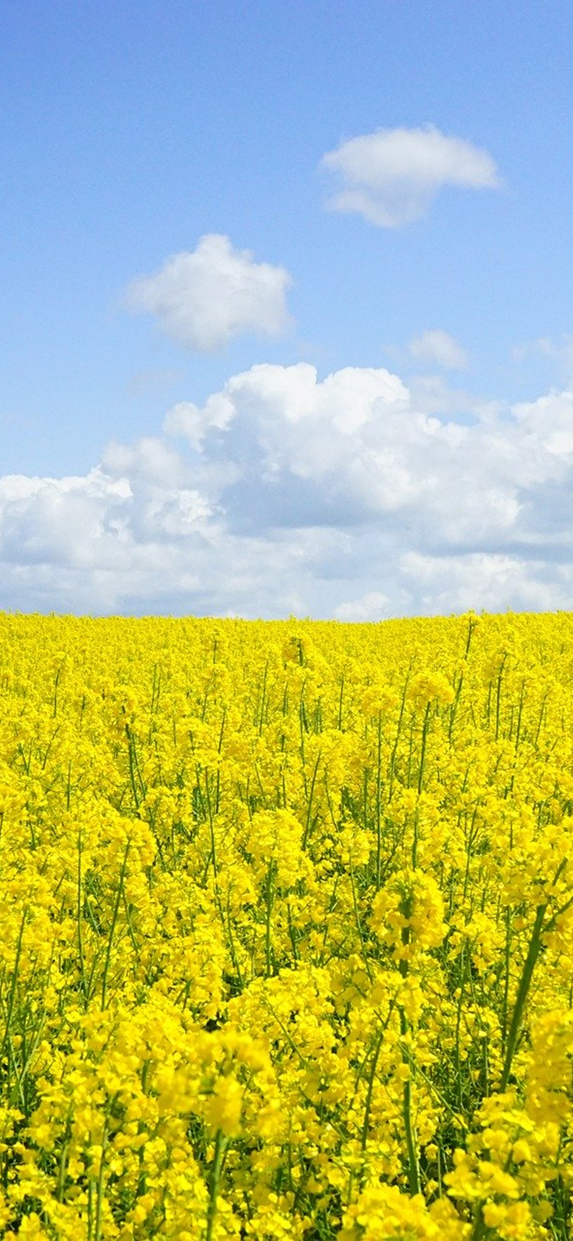 봄의 계절에 가장 잘 어울리는 것은 꽃과 노란색이죠. 하늘색의 푸른 하늘이 뒤로 보이고 노란 봄꽃 들판이 펼쳐져 있는 모습입니다.