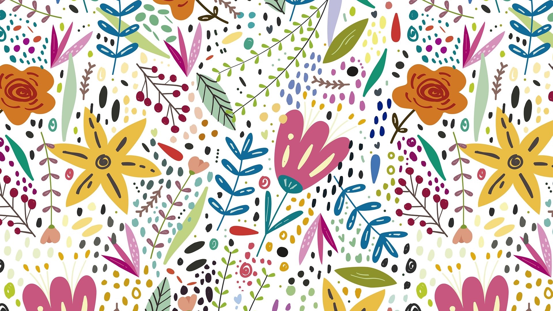 흰 배경에 여러 모양의 꽃들이 아기자기하게 그려진 이미지입니다.