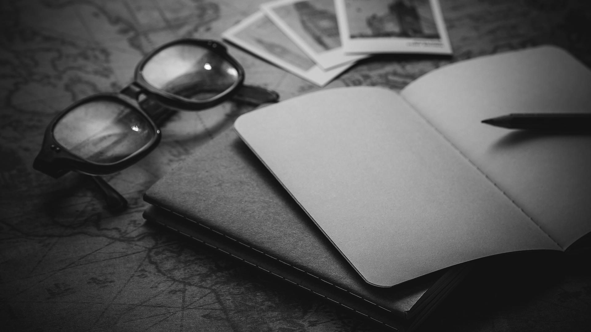 너무 아날로그 감성인가요? 오래된 것 같은 지도와 함께 그 위에 투박한 다이어리와 안경, 폴라로이드로 출력한 사진의 모습도 있네요. 아마 옛날 항해사나 철학가는 이런 곳에서 경로를 정하거나 글을 쓰지 않았을까 상상해봅니다. 이런 고전풍의 느낌도 아날로그 감성을 더해주는 것 같고요.