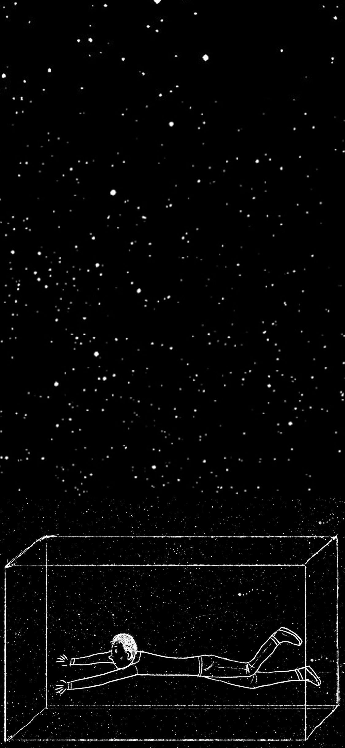 어떠한 틀이나 프레임에 갇혀 있다는 느낌을 표현한 것 같은 박스 안에 갇혀 있는 소년의 모습입니다.