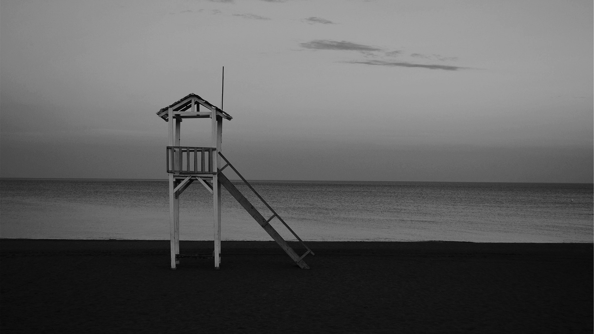 한적한 바닷가에 홀로 쓸쓸하게 서 있는 구조물의 모습입니다. 아마 바닷가에 빠진 사람을 구조하기 위해 대원들이 높은 곳에서 바라볼 수 있게 만들어놓은 것 같네요. 하지만 주변에 사람이 아무도 없기 때문에 쓸쓸하고 외로운 느낌을 전해줍니다.