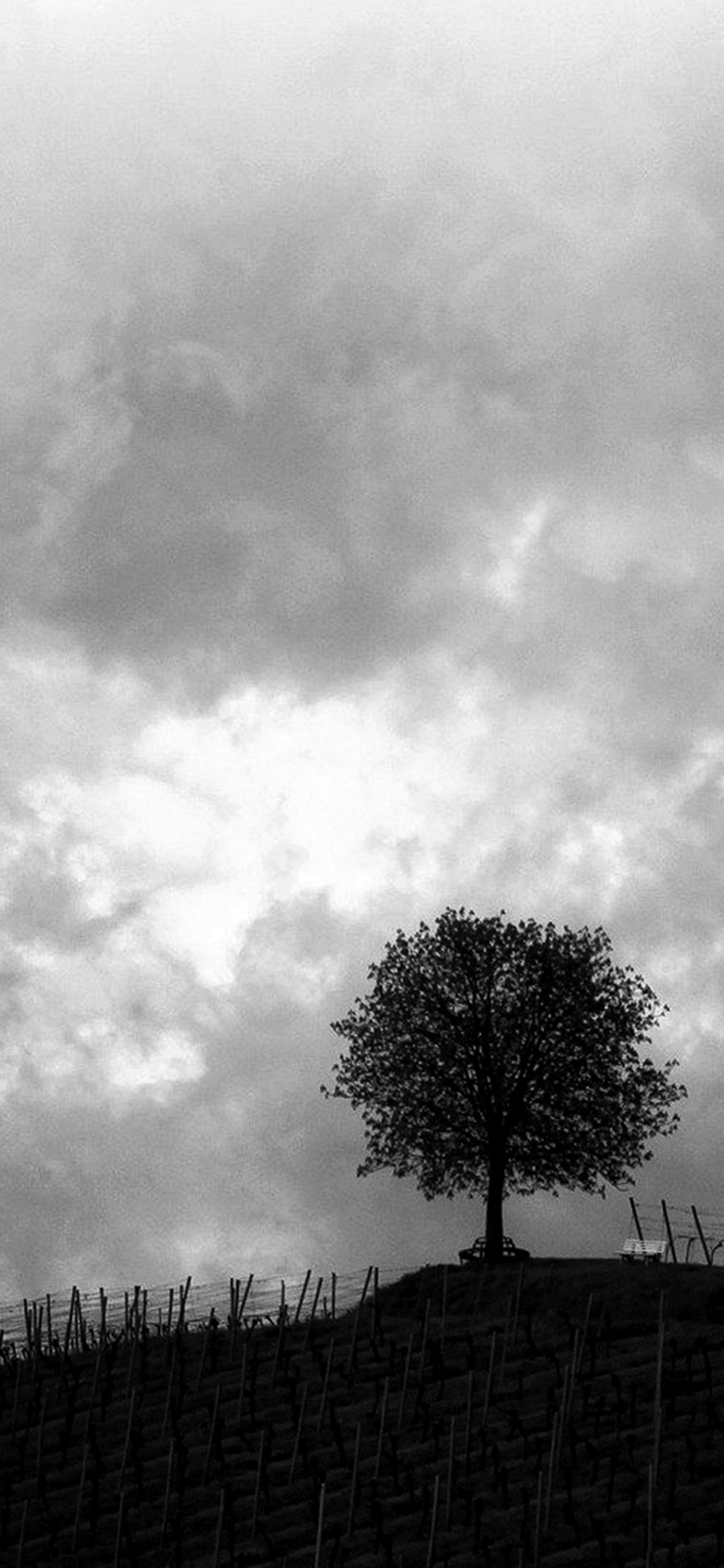 언덕에 나무 한 그루가 우직하게 서 있는 모습입니다. 하늘은 격동의 자연 변화를 담은 것처럼 구름의 형태는 격하게 변화되고 있네요.