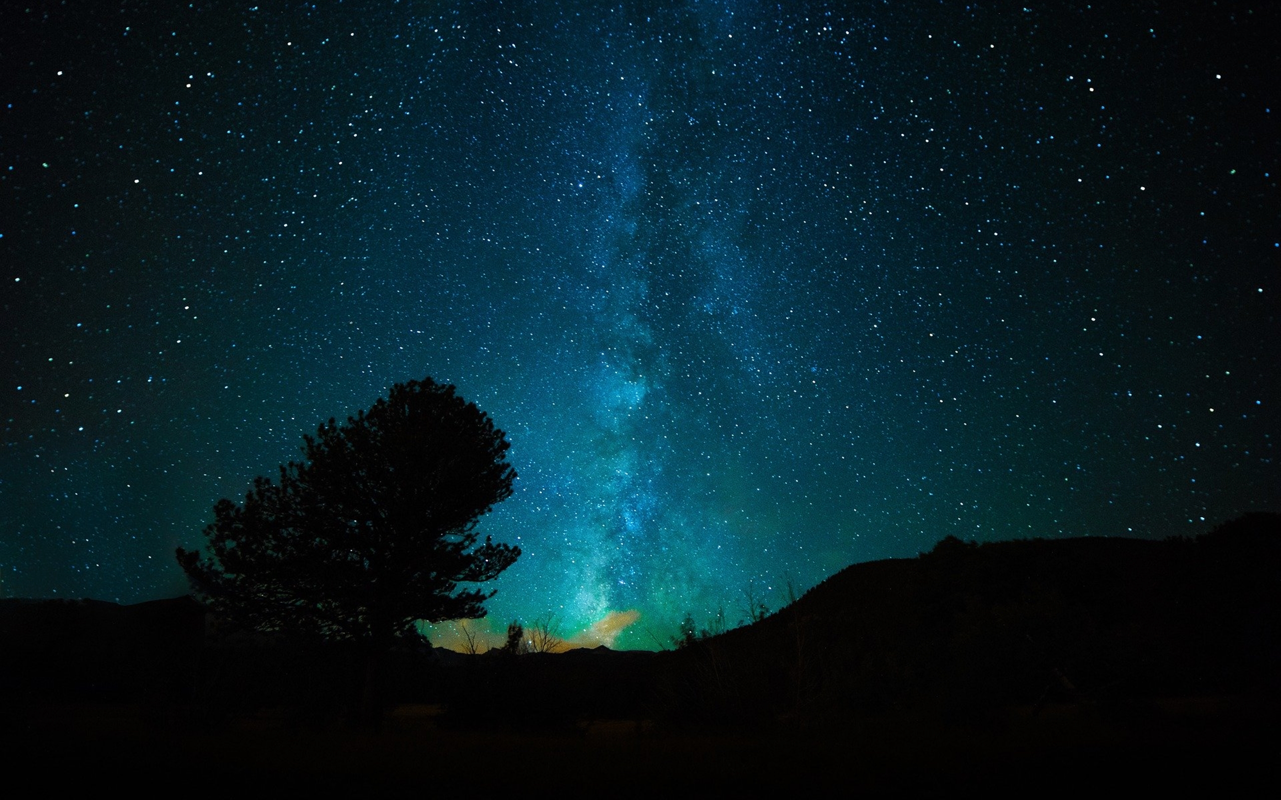 이번에는 사방에 온통 별들로 반짝이는 밤하늘입니다. 오른쪽은 살짝 언덕이 져 있으며 왼쪽에는 나무 한 그루가 서 있고 그 뒤로는 은하수처럼 수많은 별들이 반짝이고 있네요.