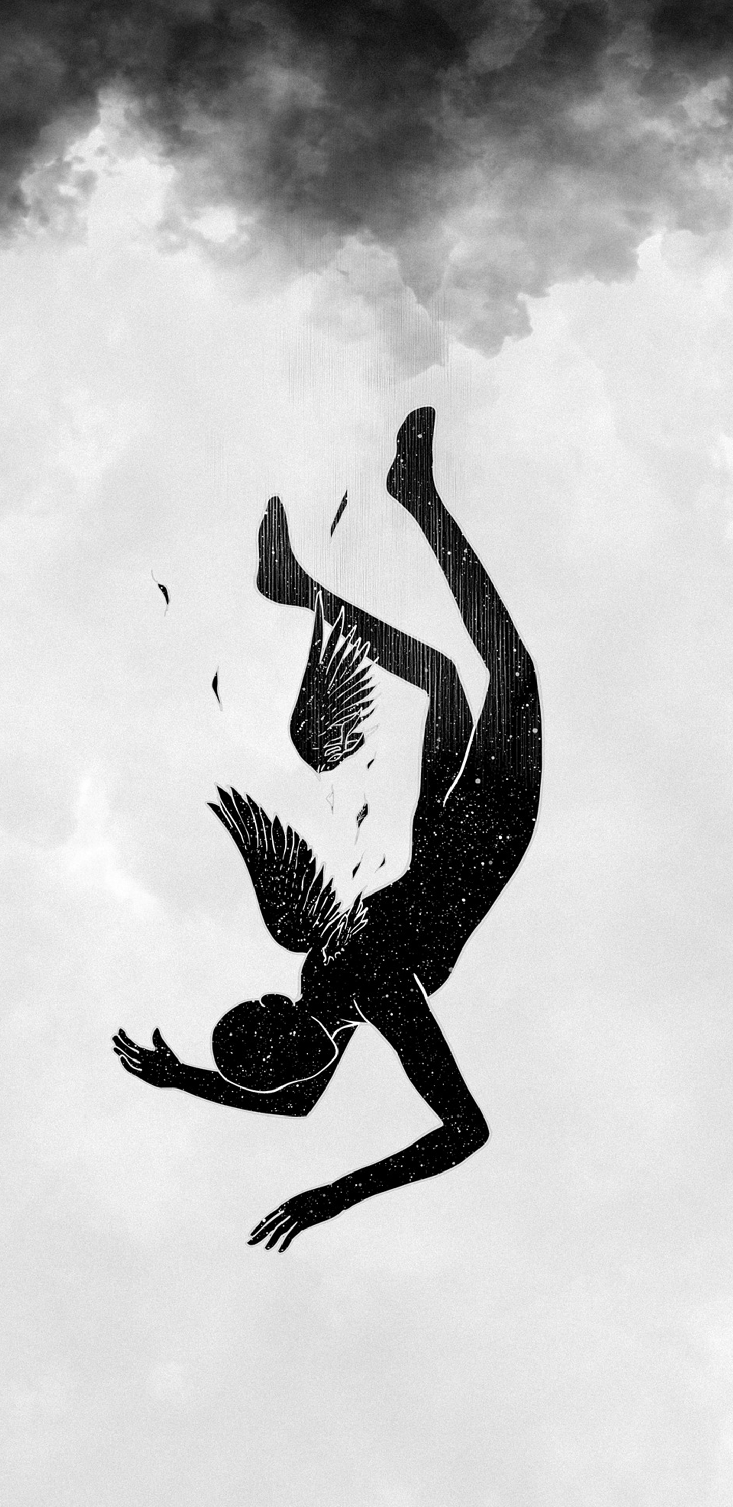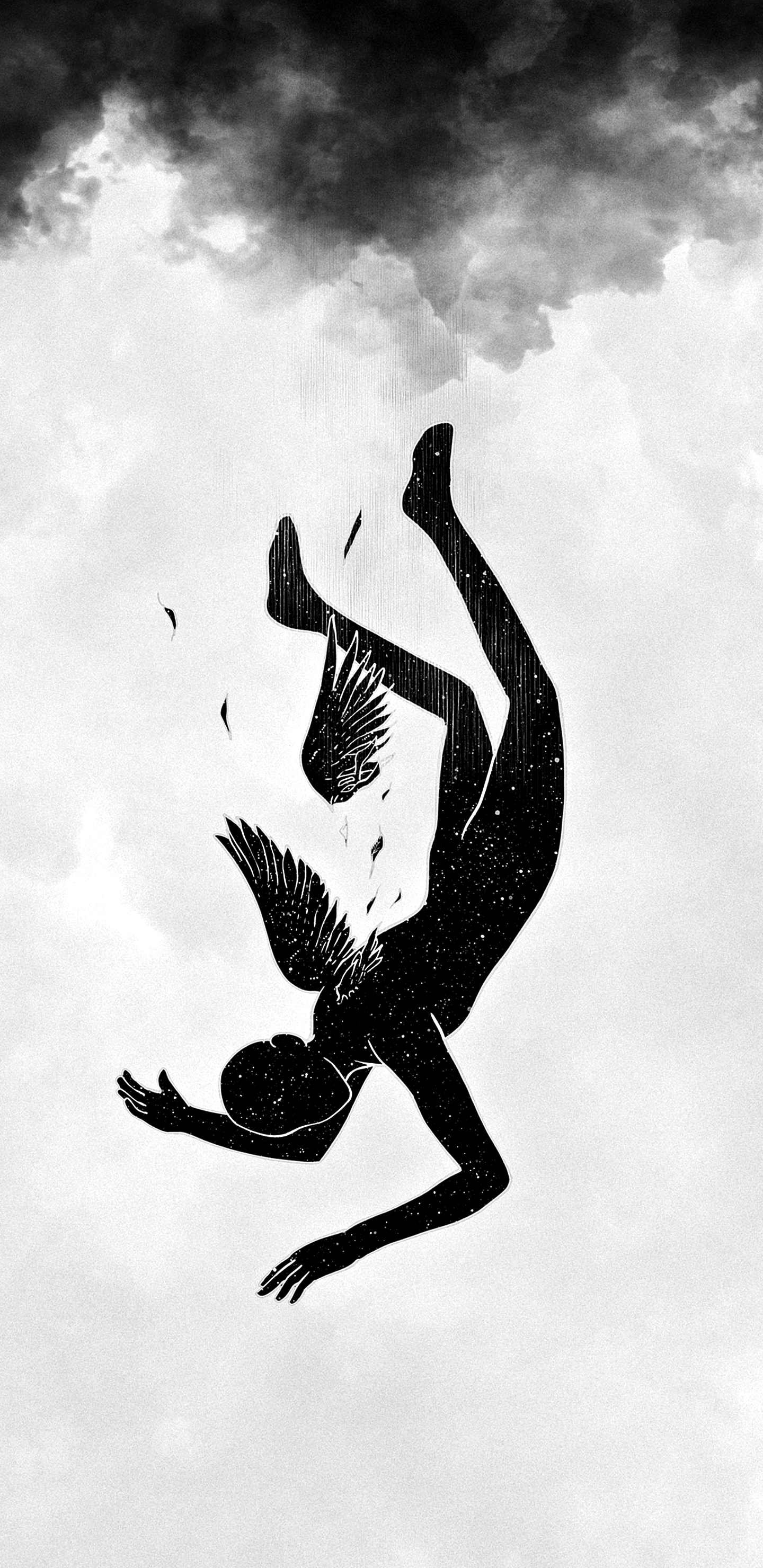 날개가 떨어져서 떨어지고 있는 천사의 모습입니다.