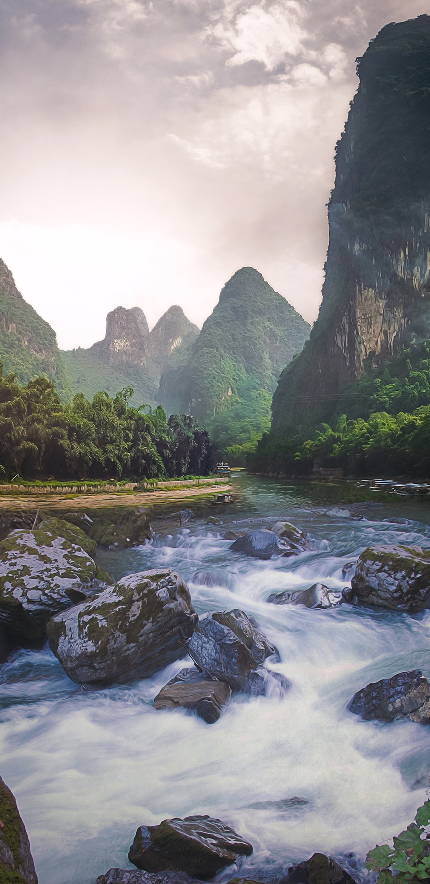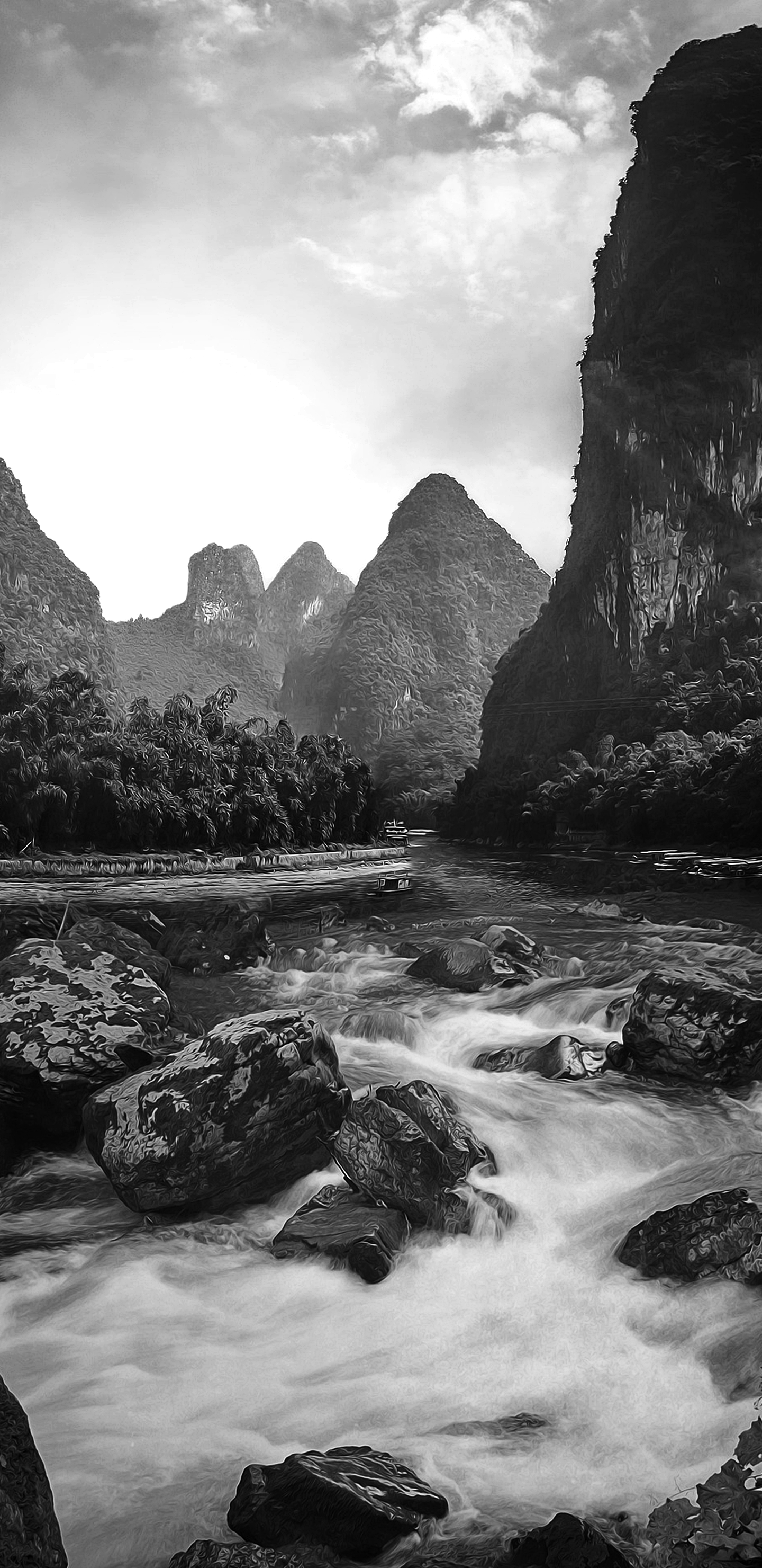 높은 산을 배경으로 빠르게 흘러가는 강한 물살의 계곡을 담고 있는 자연 풍경 사진입니다. 이렇게 마지막 배경화면까지 감상을 해봤고요. 아래는 위에 하나씩 감상을 해보았던 사진과 이미지들을 다시 흑백으로 재 수정을 해봤습니다.