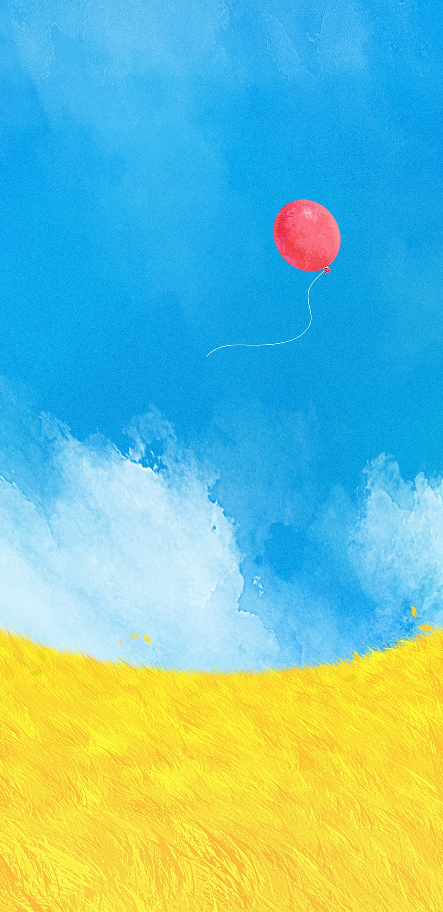노랗게 풀든 바람에 흩날리는 갈대밭과 함께 파란 하늘 그리고 날아가는 풍선을 그려놓은 이미지입니다.