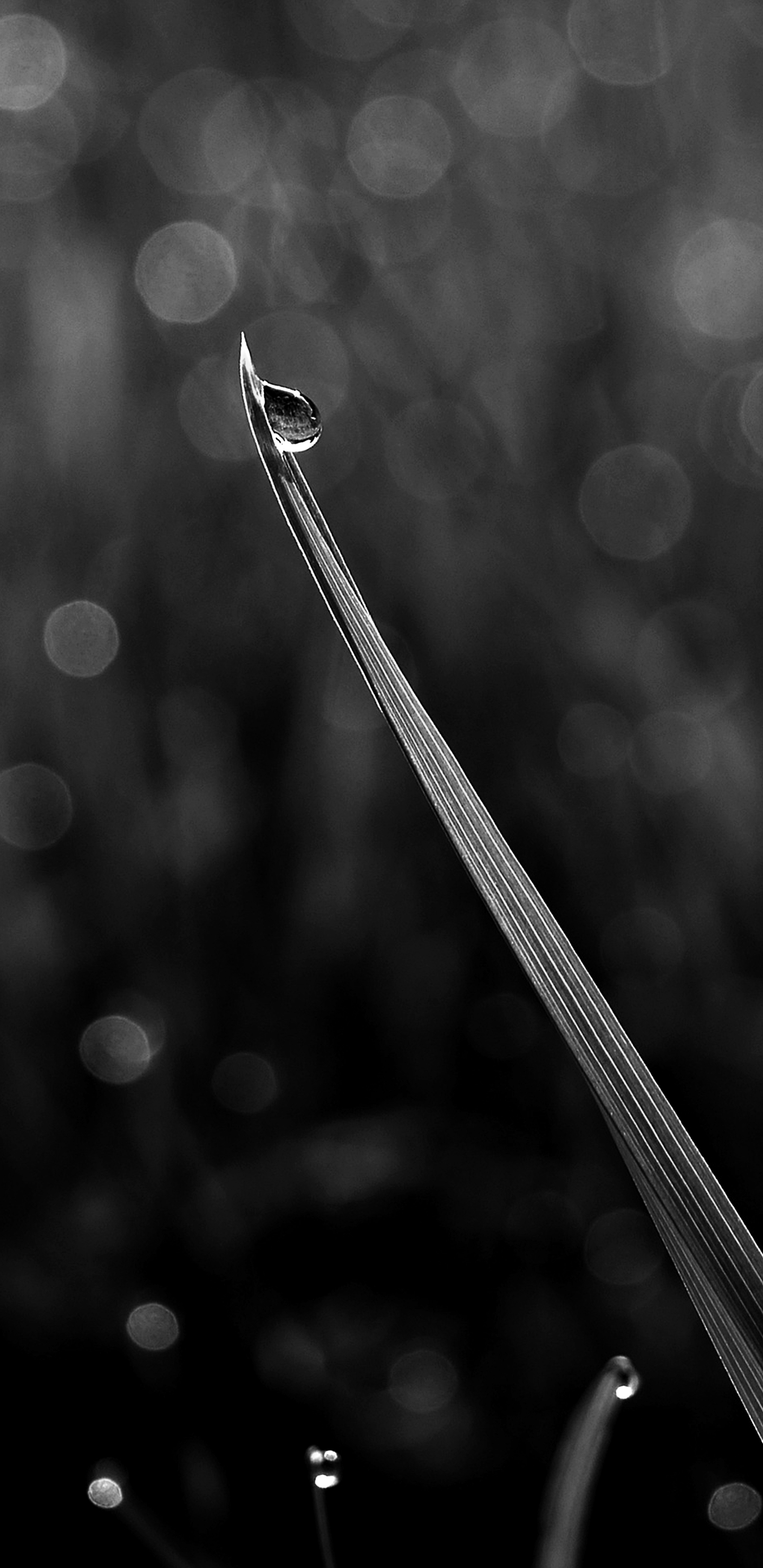 초록색의 잎사귀 끝부분에 이슬이 맺혀 있습니다. 예쁘고 맑은 감성을 전해주는 사진이네요.