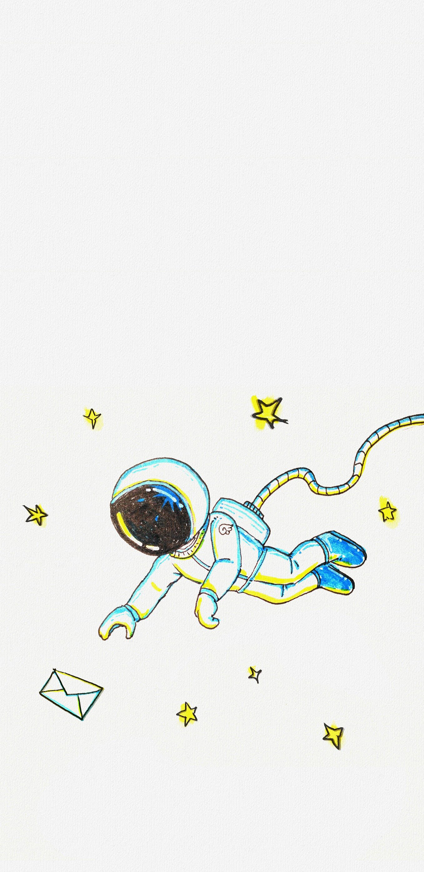 우주복을 입고 있는 사람이 날아가는 편지를 잡으려고 하는 동화적인 느낌의 배경화면입니다.