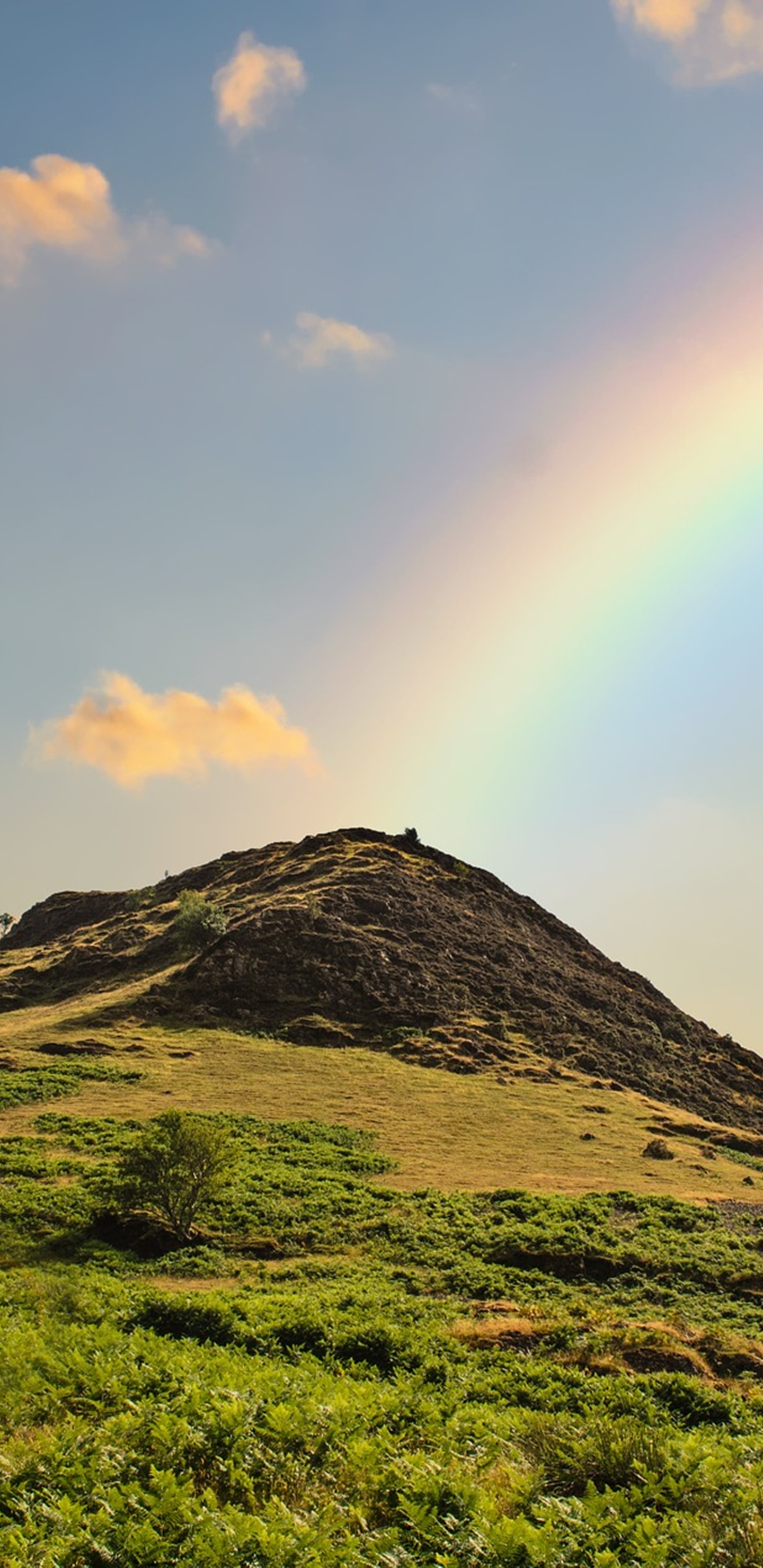 언덕에 자연스럽게 형성되어 있는 무지개입니다.