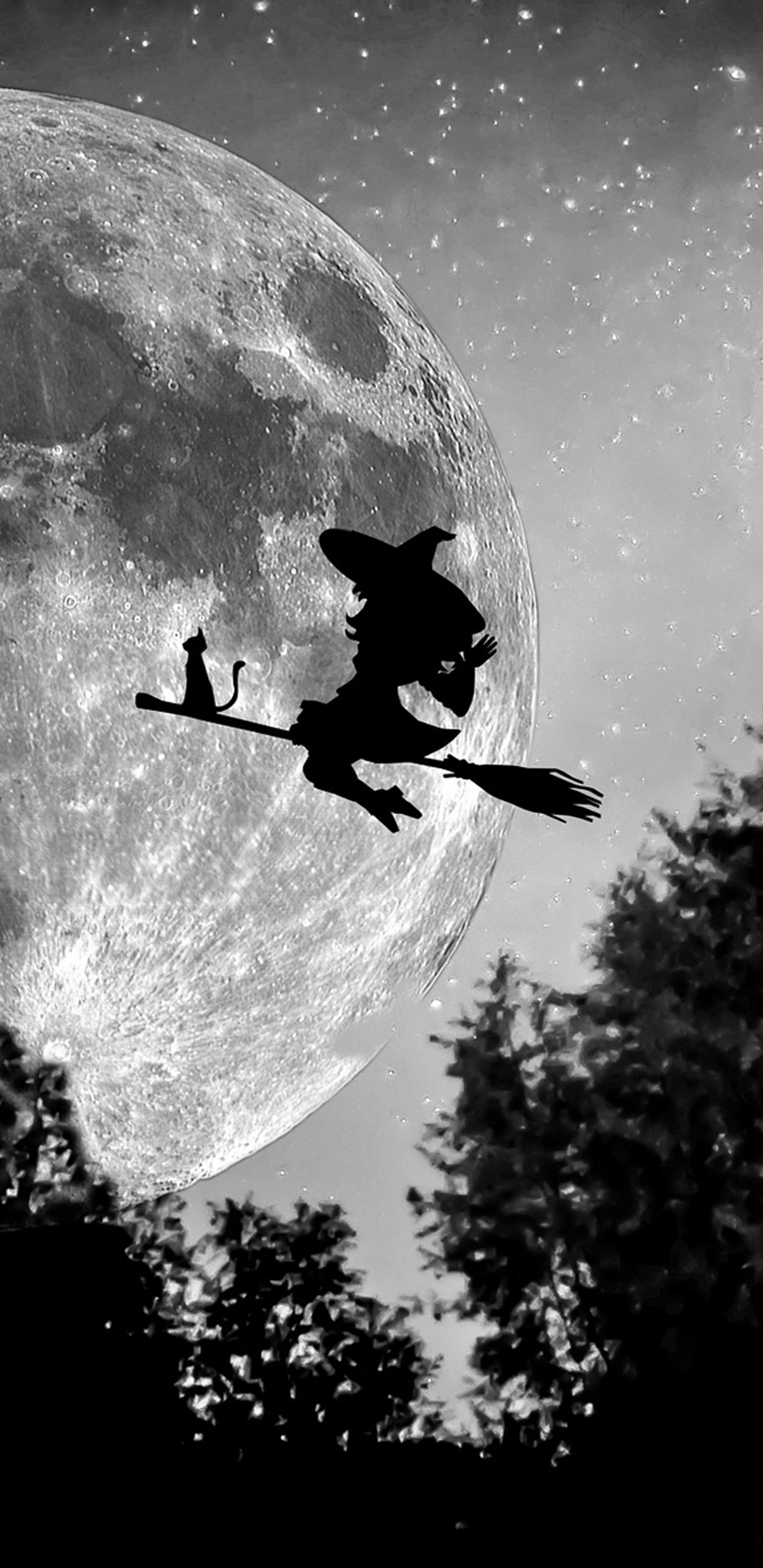 이런 느낌도 좋아요. 깊은 밤 마녀가 빗자루를 타고 어디론가 날아가고 있네요. 그 앞에는 고양이가 타고 있어 신비로운 환타지 느낌을 더해줍니다. 아마 어딘가에서 아무도 모르게 마법을 부리고 다급하게 달나라고 다시 올라가고 있는 것은 아닐까요? 아무도 발견하지도 눈치채지도 못하게 말이죠.