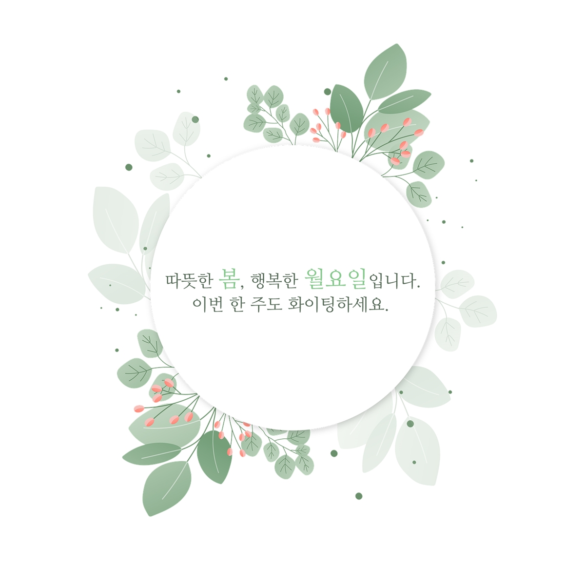 한주의 시작인 월요일이네요. 주말에는 잘 쉬셨는지요. 비록 피곤하고 힘겨울 수 있는 월요일이지만~ 봄날의 새싹처럼 새롭게 시작하는 마음으로 차근차근 해내시어 이번 한 주도 잘 보내셨으면 좋겠습니다.