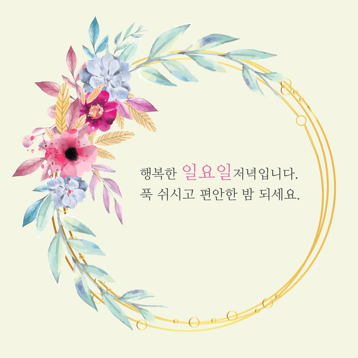 행복한 일요일 저녁입니다. 오늘도 푹 쉬시고 편안한 밤 되세요.
