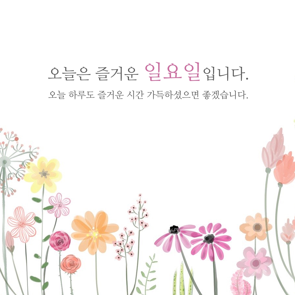 행복이 가득한 일요일입니다. 비록 마지막 휴일이기는 하지만 충분한 휴식과 함께 오늘 하루도 알차게 보내시길 바라며 한 주를 잘 마무리하셨으면 좋겠습니다.