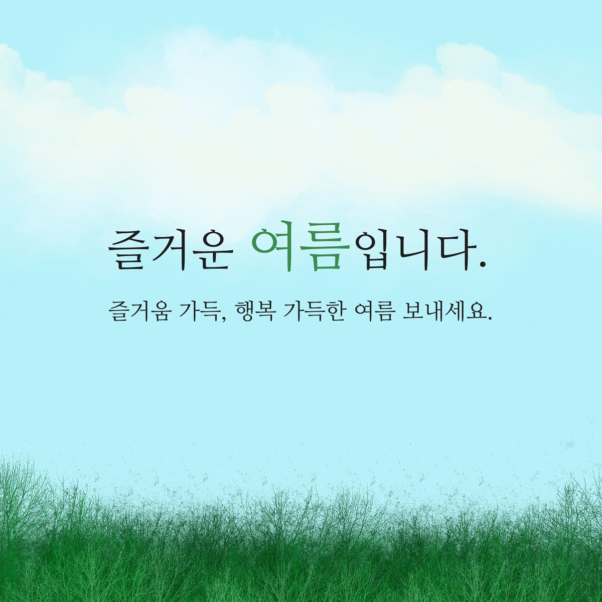 즐거운 여름입니다. 비록 무더위가 연일 이어지고 있어 쉽게 지치기 마련이지만 긍정적인 생각으로 잘 극복하신다면 남은 계절들도 즐거움과 행복이 가득한 시간들로 이어지지 않을까 싶습니다. 늘 건강 유의하시고 행복하시길 바랍니다.