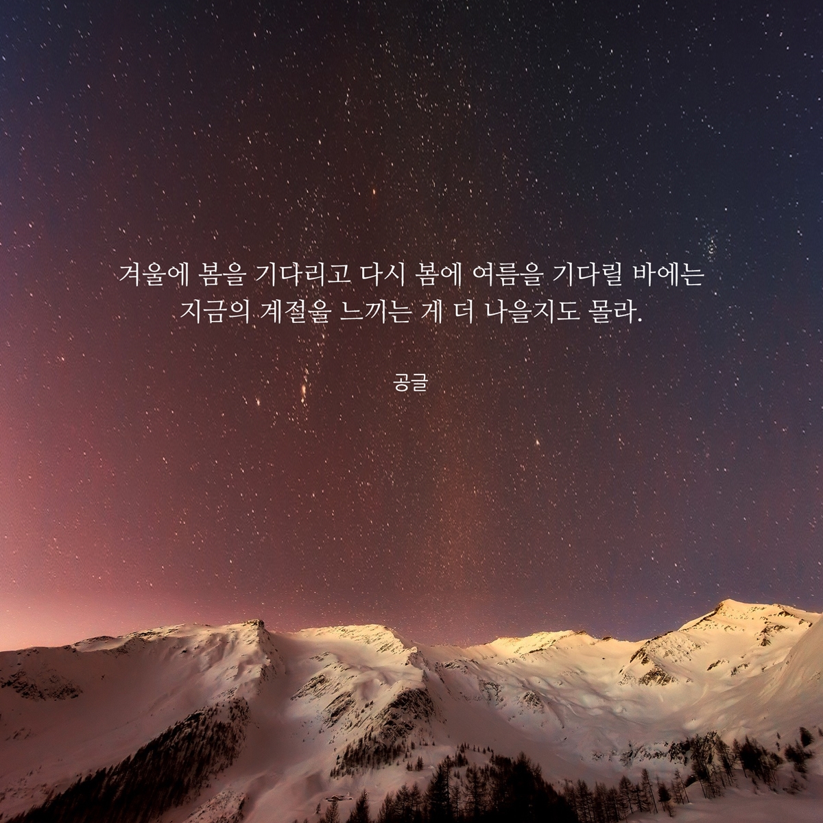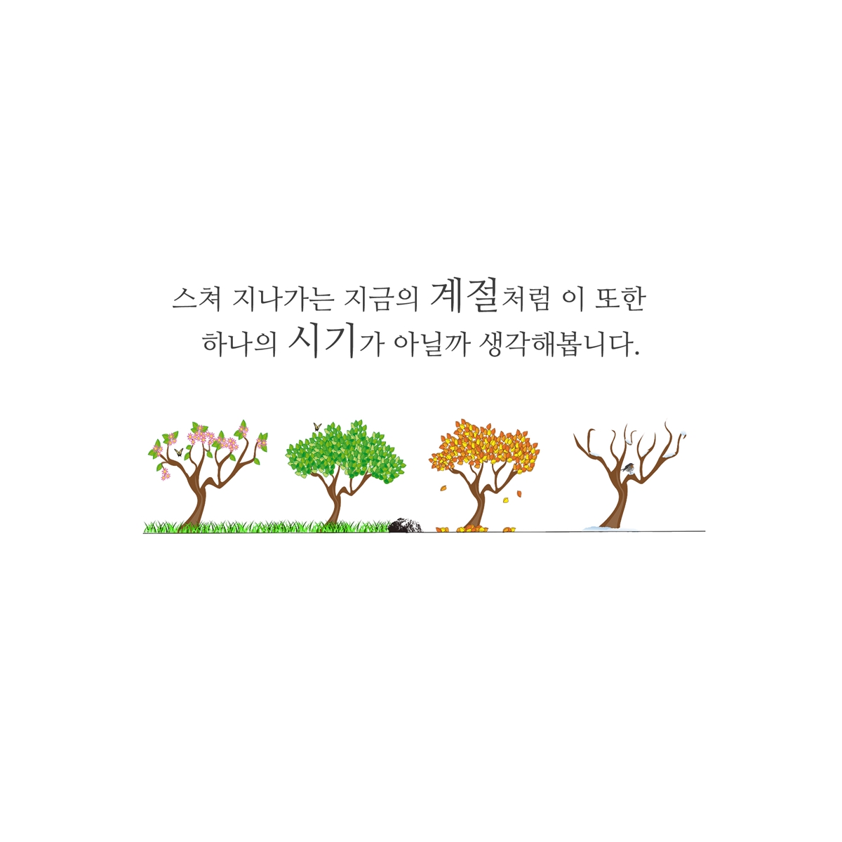 지금의 힘든 시기는 한 걸음 더 나아가기 위한 과정이 아닐까 생각됩니다. 힘든 시기도 잘 이겨내시길 바라며 이번의 계절도 밝고 힘차게 보내시길 기원합니다.