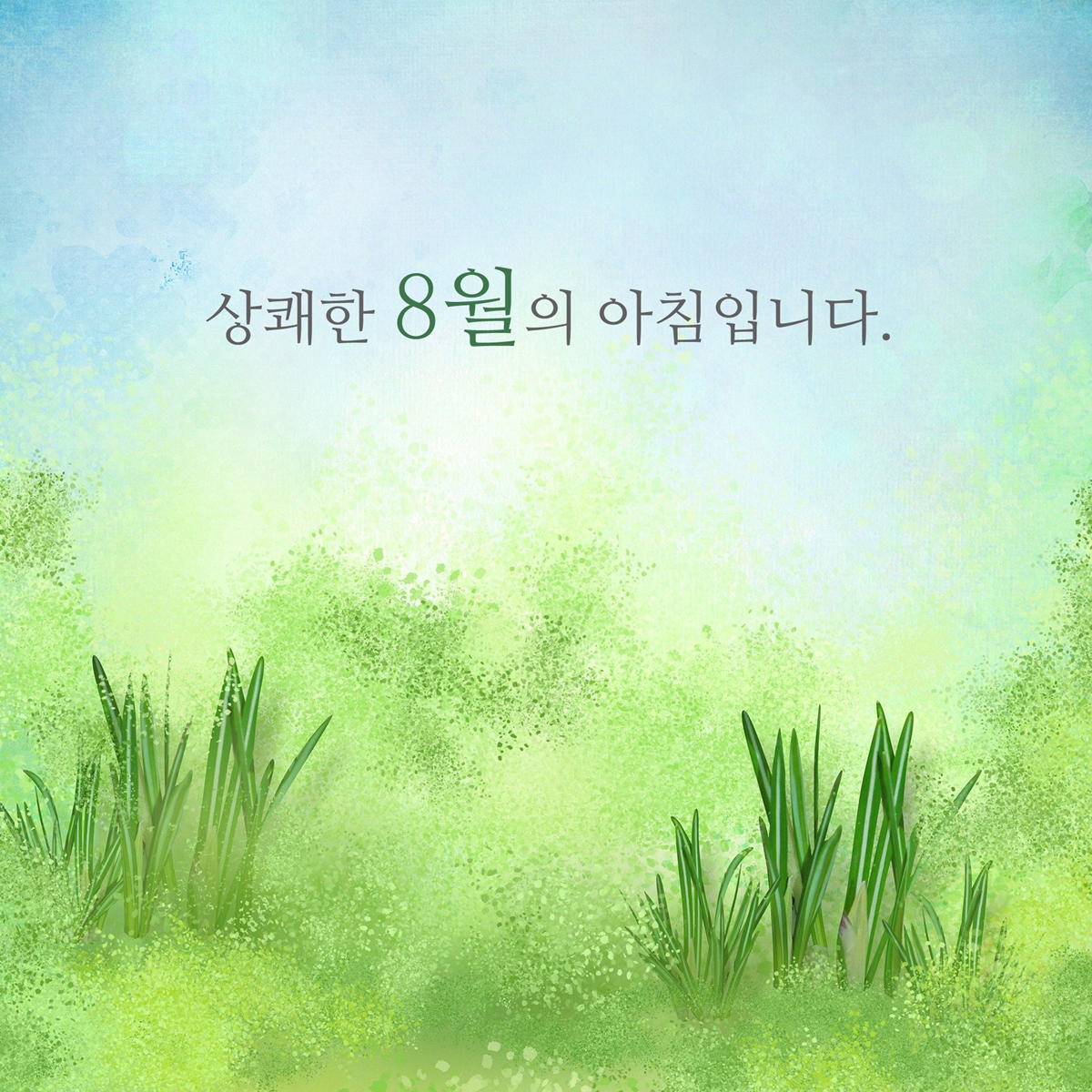 상쾌한 8월의 아침입니다. 시간이 너무 빨리 흘러가는 것 같습니다. 이번 여름도 빨리 지나가버리는 것은 아닌가 싶네요. 빠르게 흘러가는 시간들도 의미 있는 일, 좋은 추억과 행복한 일들로 가득 채운다면 아쉬움은 조금 덜하지 않을까 싶네요. 오늘 하루도 활기차고 힘차게 시작하시길 바라며 좋은 일들이 가득하셨으면 좋겠습니다.