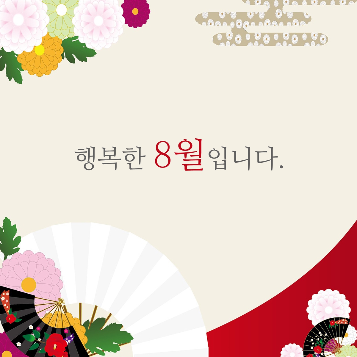 행복한 8월이 시작되었습니다. 무더위 물놀이 안전 및 건강 유의하시고 8월도 즐겁고 행복한 시간 가득하시길 바랍니다.