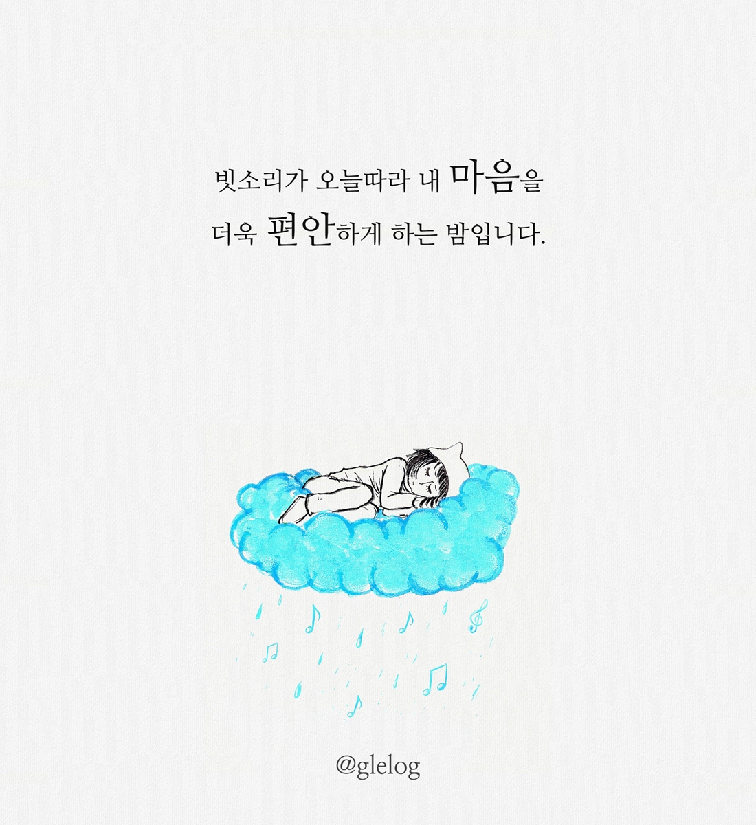 연일 비가 계속되는 가운데 언제까지 비가 계속될지는 모르겠습니다. 많은 비가 내려도 기운 잃지 마시길 바라며 마음만큼은 화창한 기분 잘 유지하셨으면 좋겠습니다. 빗길 안전거리 및 서행운전하시길 바라며 오늘도 행복할 수 있는 하루 보내셨으면 합니다.