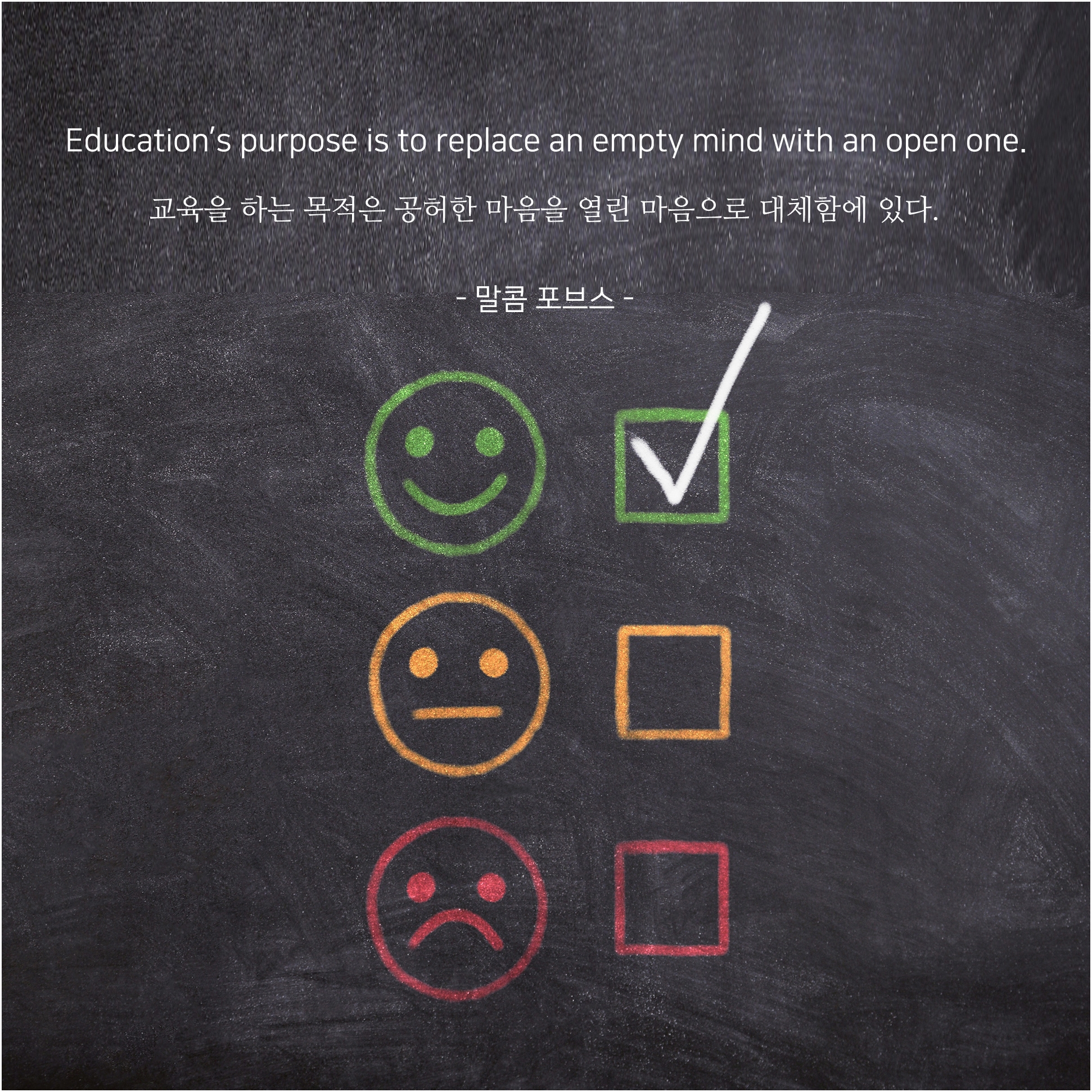 감정적인 기반을 갖고 있다는 명언이다. 감정적인 기반이라고 한다면 한 사람이 느끼게 되는 여러 감정들이 기초가 되는 바탕이라는 뜻이다. 단지 정보를 얻고 능력을 개발하는 1차원적인 과정이 되기도 하지만 그 과정 안에서는 슬픔, 기쁨, 좌절, 행복 등 한 사람 개인이 여러 감정들을 느끼며 좀 더 성숙한 인격을 완성해나가는 그런 총체적인 과정이 아닐까?