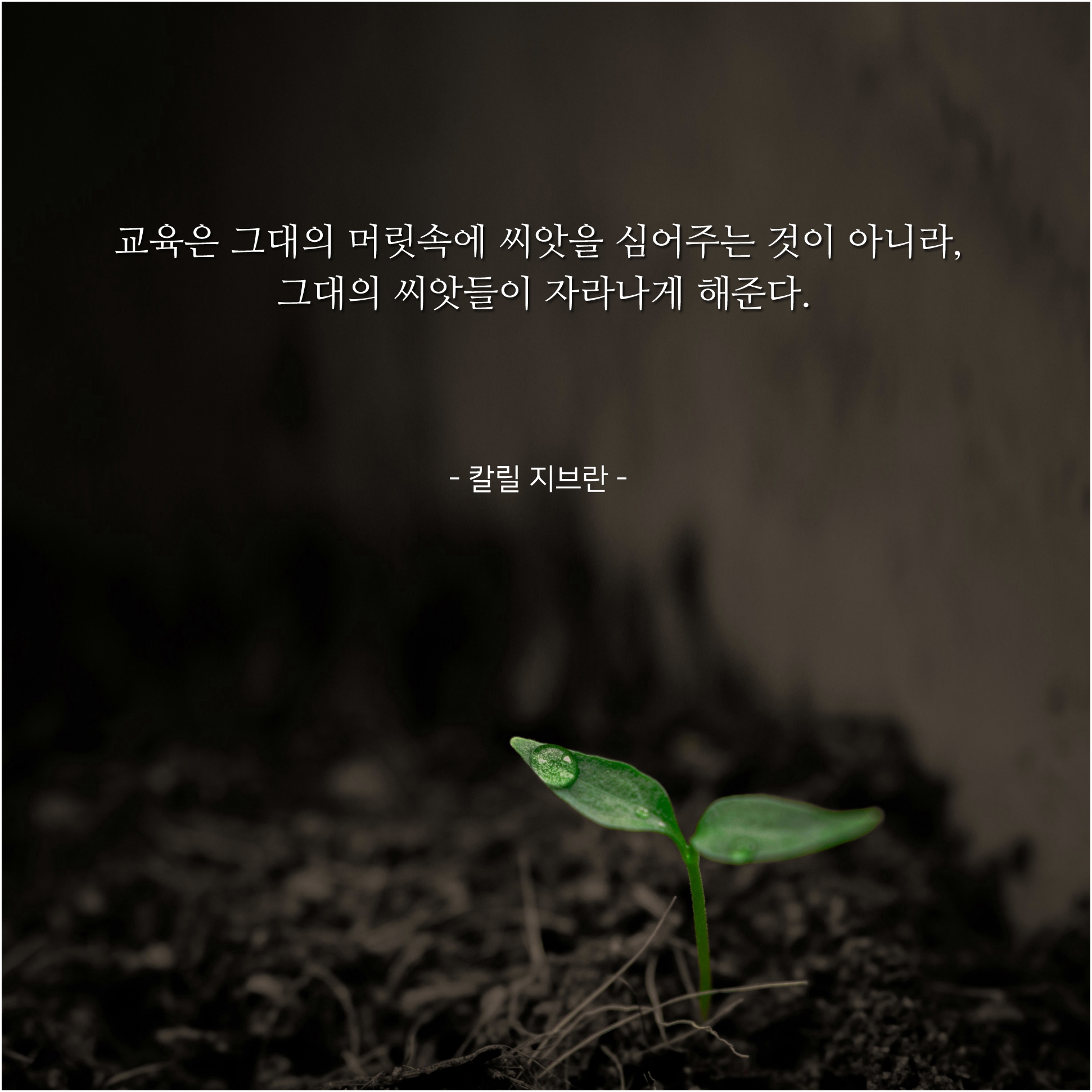 교육이라는 것이 한 사람의 인생. 그 인생에 대한 방향을 결정한다는 내용의 플라톤의 명언이다. 단지 교육이나 학습 배움을 통해서 지식을 습득하는 역할을 하기도 하지만 그 사람이 어떤 인생을 살아갈지 그 방향성을 결정하는 중요한 단계가 바로 교육이다.