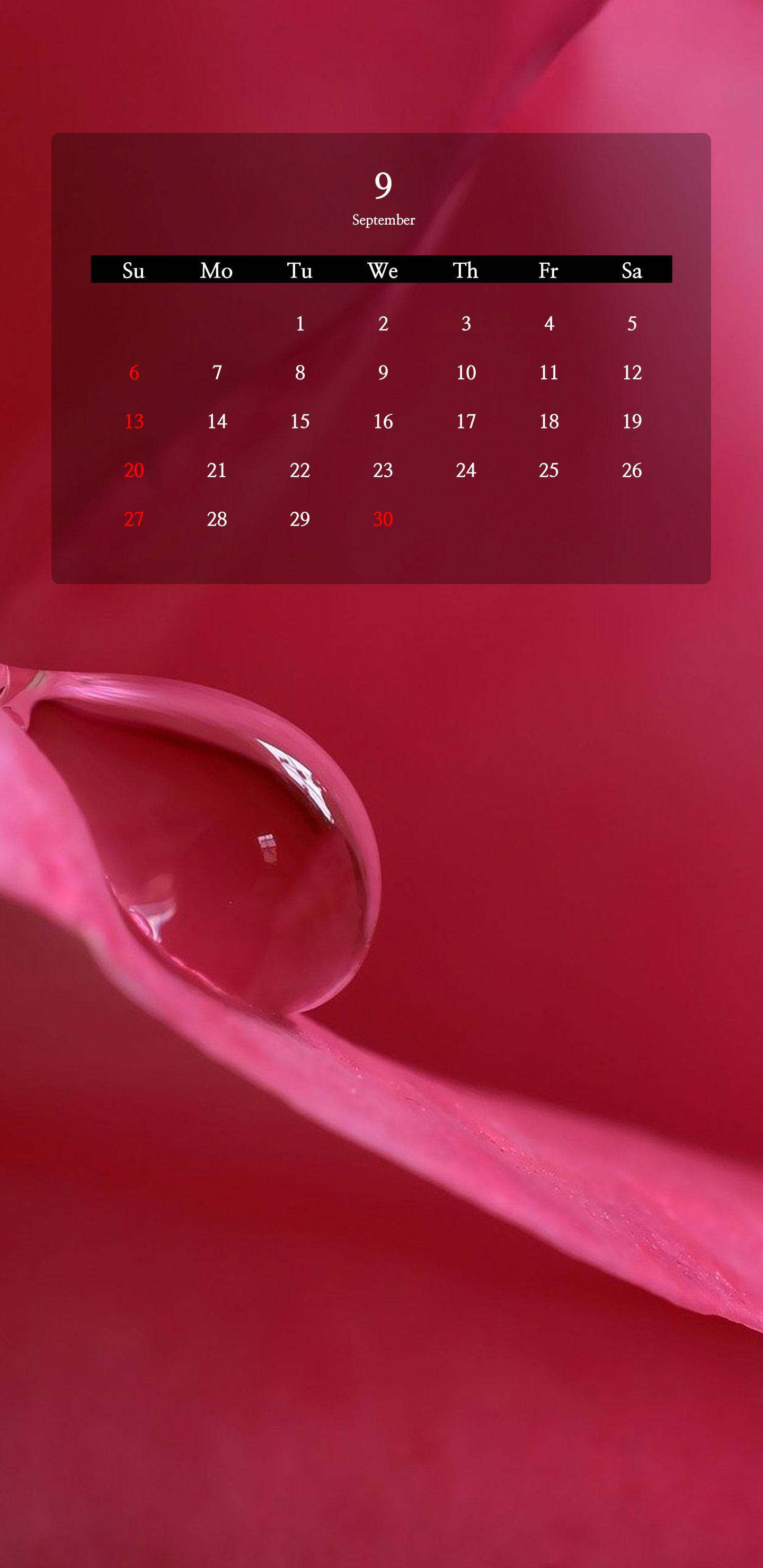 그리고 장미꽃의 잎에 이슬이 맺혀있는 모습을 담은 2020년 9월 달력 배경화면입니다. 매혹적인 색상이나 감성 이미지를 선호하시거나 좋아하시는 분들도 이런 이미지도 괜찮을 것 같습니다.