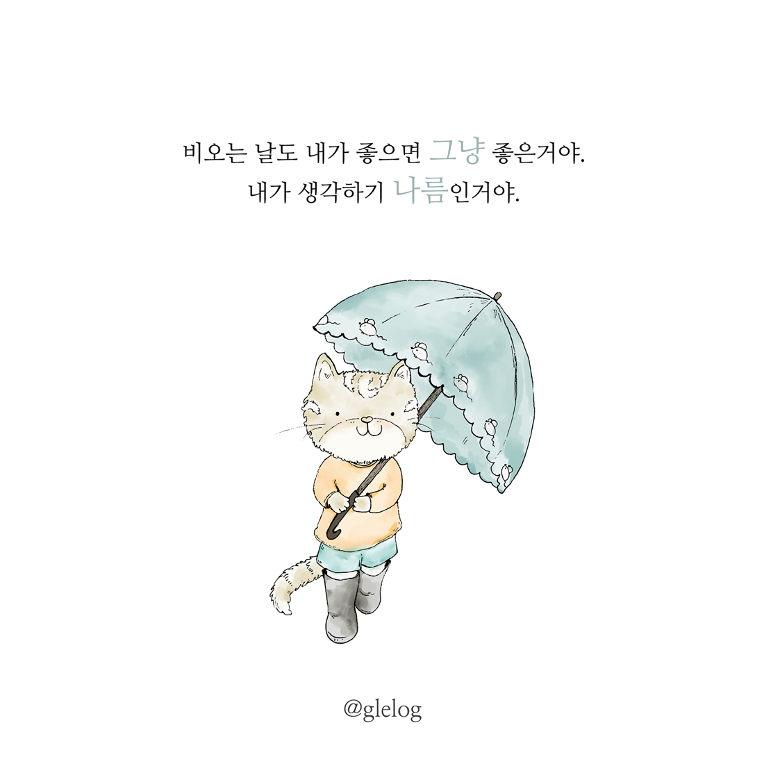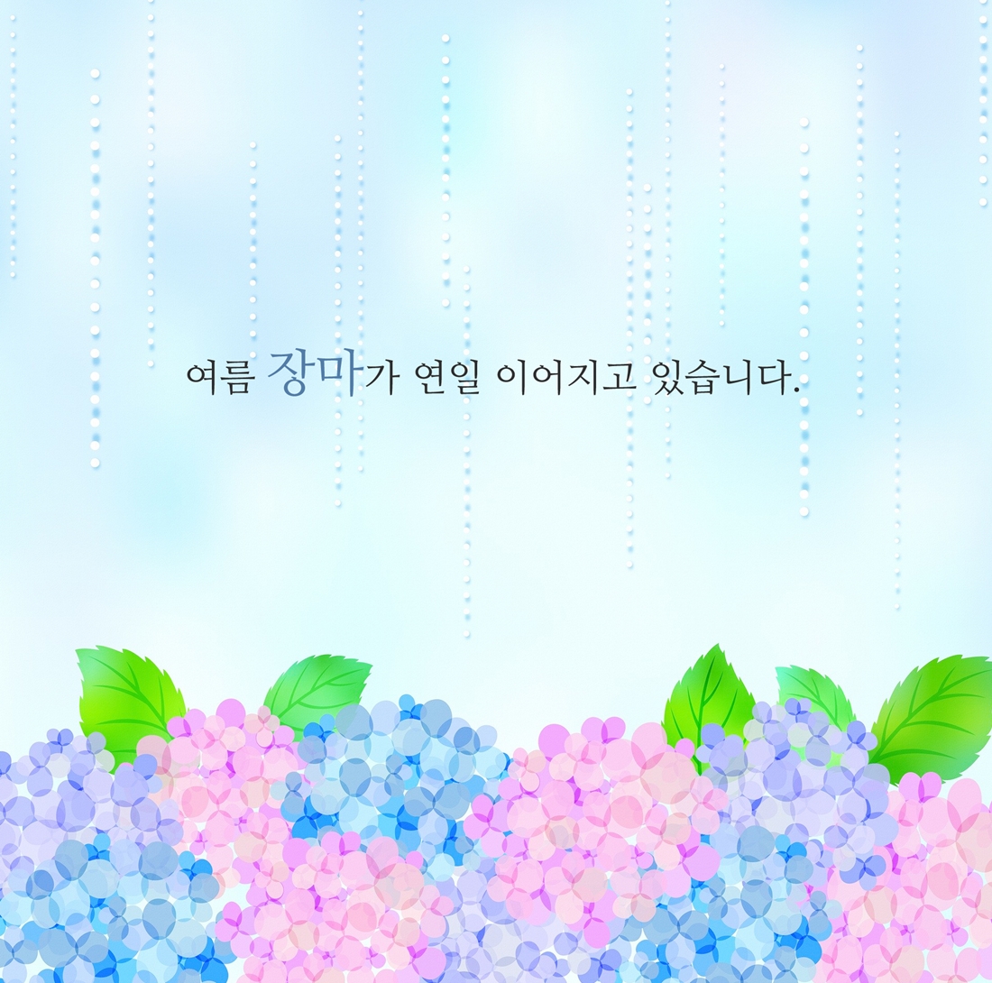 여름 장마가 연일 계속되고 있습니다. 비 오는는 날 우중충한 날씨로 인해 괜스레 울적해지는 요즘이지만 이럴 때일수록 기운 내시고 즐겁고 기쁜 마음 잘 간직하셨으면 좋겠습니다. 오늘도 웃음이 가득한 날 되시길 바랍니다.