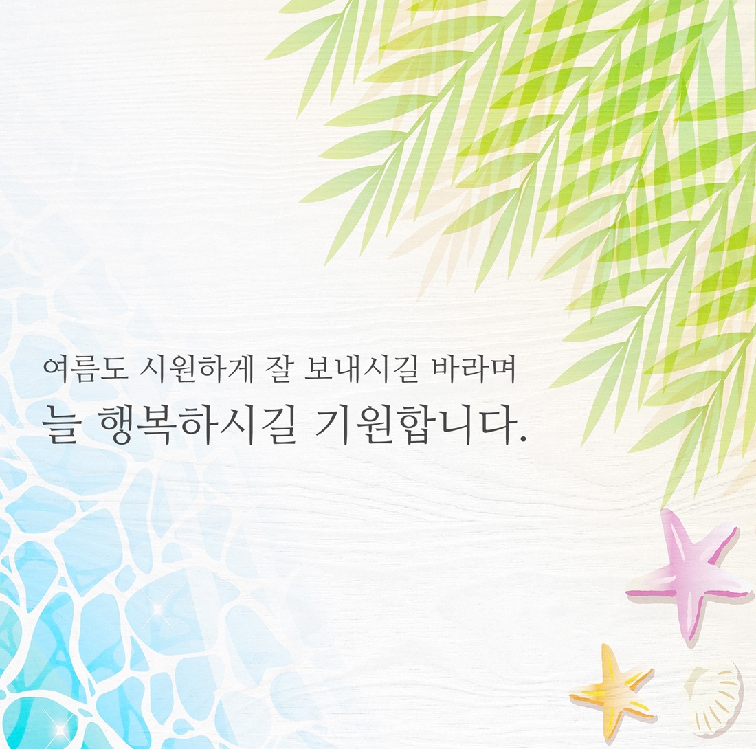 여름도 마음만큼은 시원하게 잘 보내시길 바라며 늘 행복하시길 기원합니다. 항상 건강하세요.