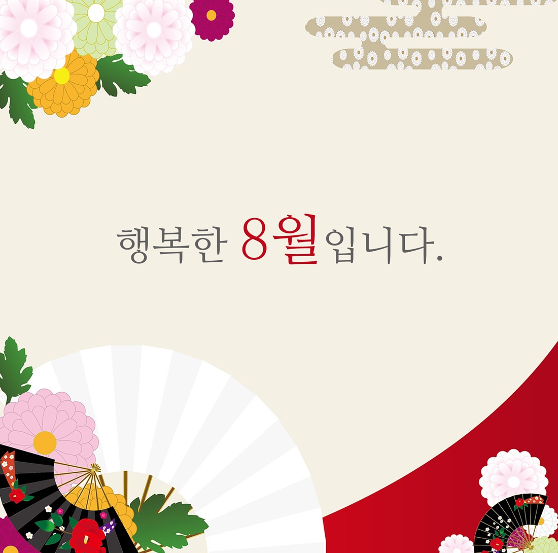 어느덧 8월이 시작되었습니다. 다가오는 달에는 기쁨이 가득, 행복이 가득한 8월이 되셨으면 좋겠습니다.