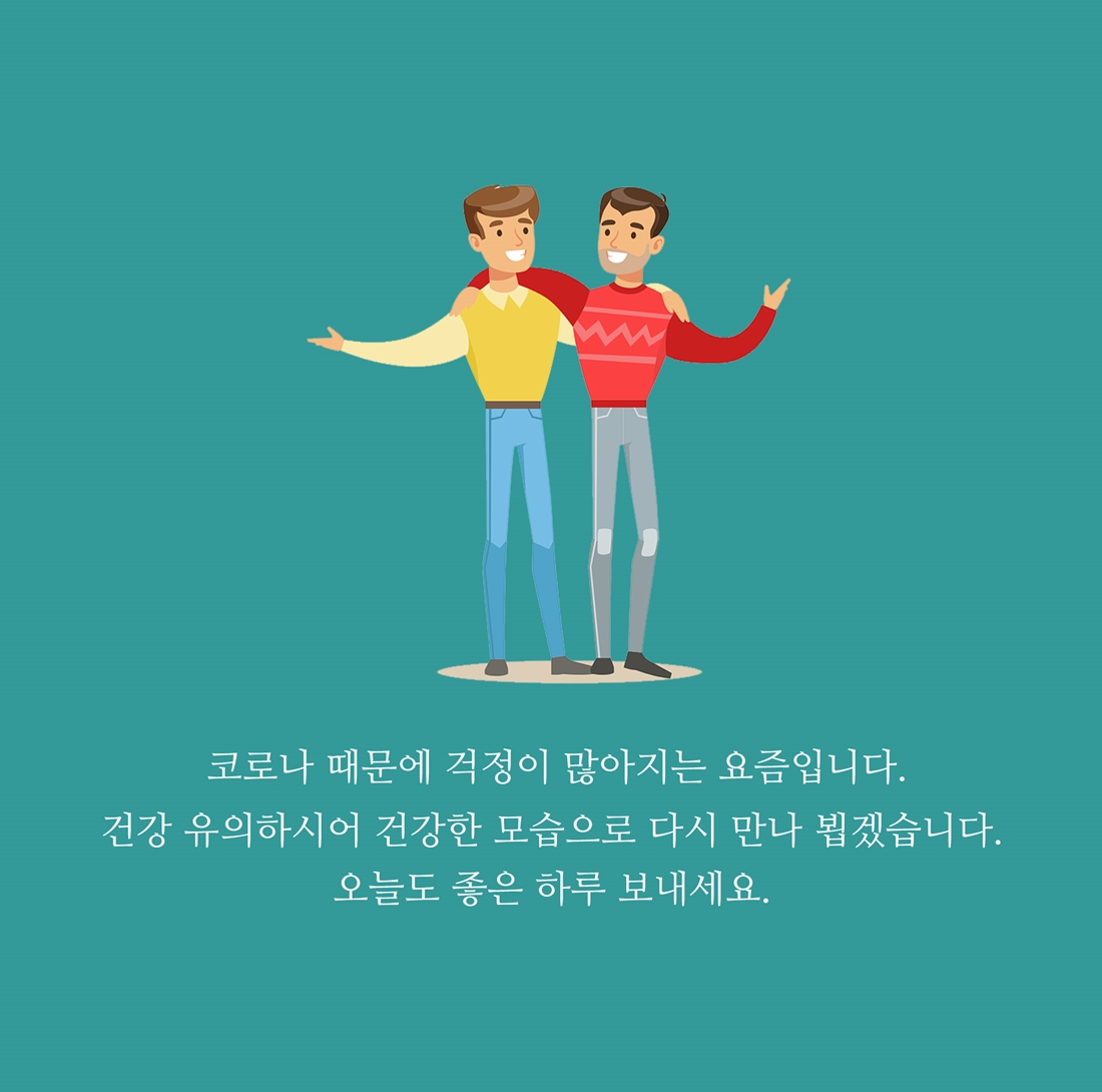 연일 코로나19 소식에 불안함이 가득한 시기이지만 철저한 예방 수칙을 잘 지킨다면 잘 이겨낼 수 있지 않을까 싶습니다. 항상 건강 유의하시고 오늘도 웃음꽃 필 수 있는 하루가 되시길 바랍니다.