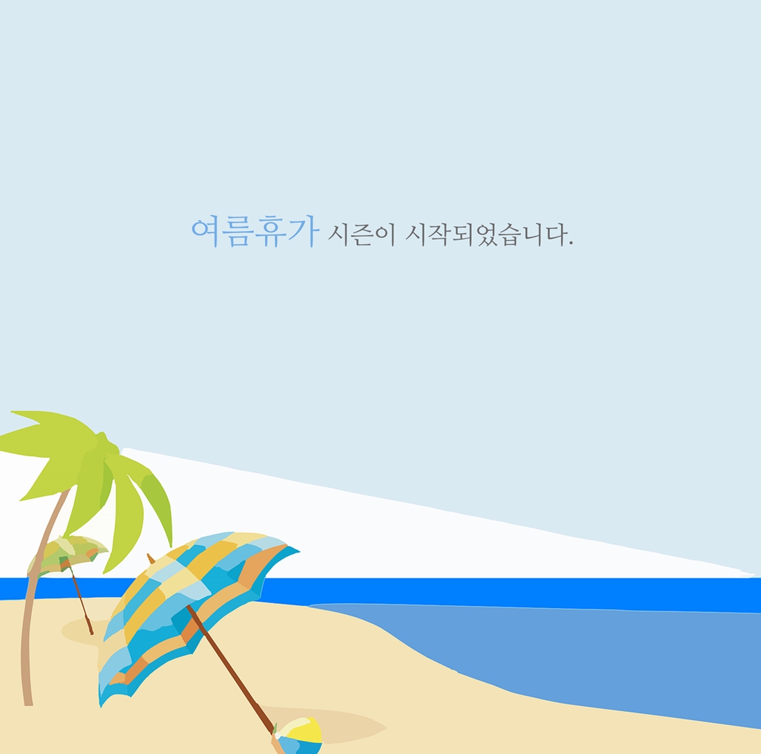 무더운 여름이 찾아옴과 동시에 본격적인 여름 휴가 시즌이 찾아왔습니다. 이번 여름휴가는 가고 싶은 곳으로 떠나 즐거움 가득, 기쁨 가득한 휴가 보내고 오셨으면 좋겠습니다. 항상 건강하시고 행복하세요.