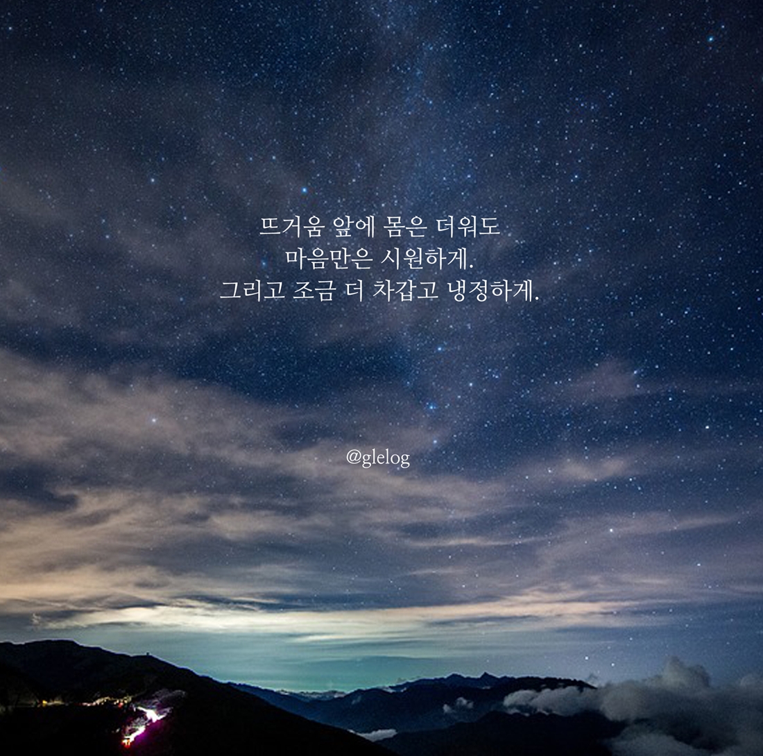 무덥고 짜증 나는 계절도 자연스레 지나가는 것처럼 지금의 힘들고 어려운 일도 시간이 지나면 모두 극복할 수 있지 않을까 생각됩니다. 항상 긍정의 마음가짐으로 이번 여름도 잘 이겨내시길 바라며 항상 행복한 시간 계속 이어지셨으면 좋겠습니다.