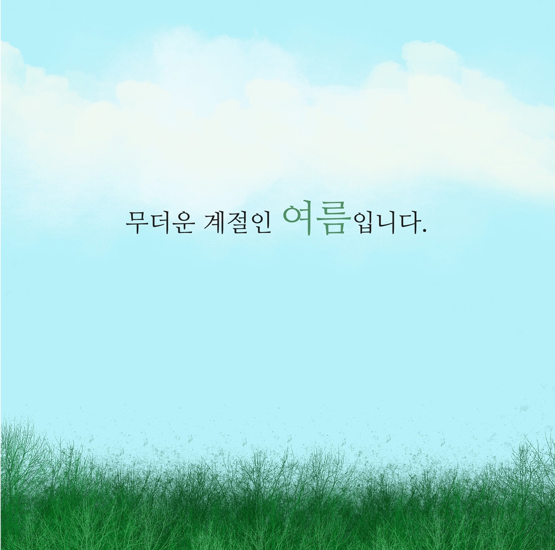 여름은 일 년 중 가장 뜨겁고 무더운 계절이기도 하지만 가장 화창하고도 푸르른 계절이 아닐까 생각됩니다. 덥고 짜증 날 수 있는 여름도 좋은 마음가짐으로 잘 이겨내셨으면 좋겠습니다.