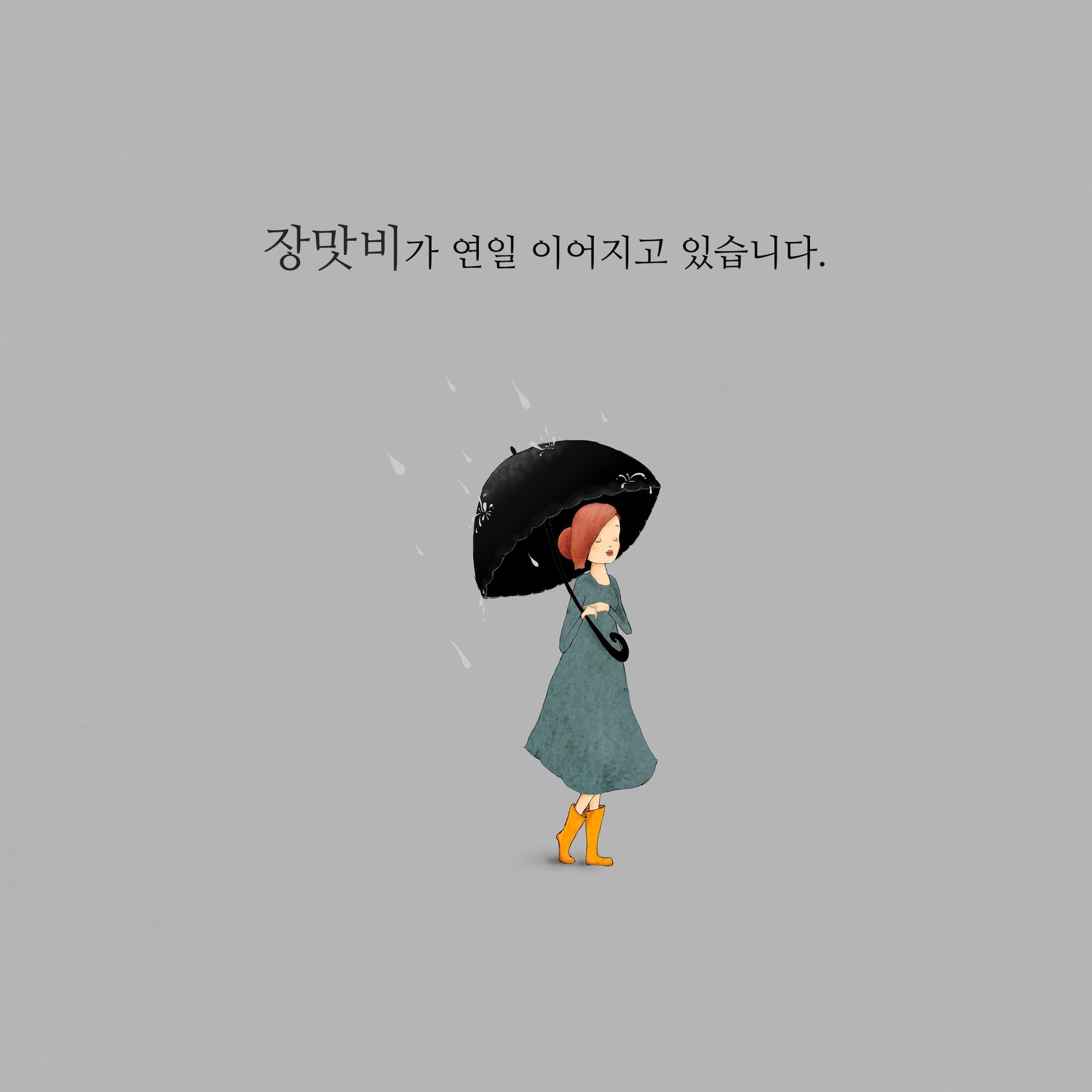 장맛비가 연일 계속되고 있습니다. 한동안 비 소식이 계속 있을 예정이지만 다시 한번 맑은 날이 찾아올 것을 기대해보며 좋은 기분 잘 유지하셨으면 좋겠습니다. 오늘도 즐거움과 기쁨 가득, 행복 가득한 하루 보내시길 바랍니다.