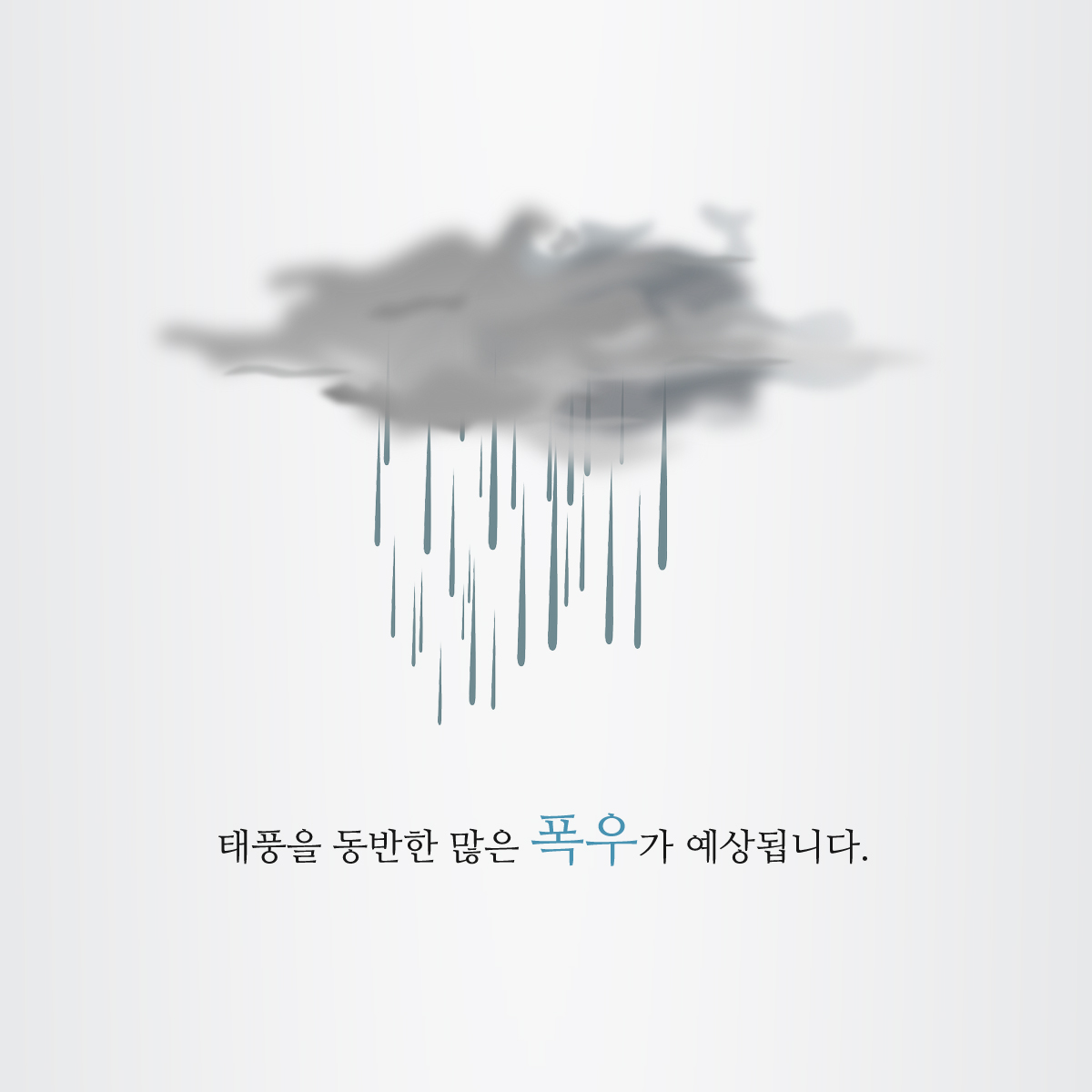 오늘은 태풍을 동반한 많은 폭우가 예상됩니다. 매 순간 주변을 잘 살피시고 조심하시길 바라며 가급적이면 외출보다는 실내 활동을 하시는 것이 좋을 것 같습니다. 오늘도 수고 많으셨으며 편안한 밤 되시길 바랍니다.
