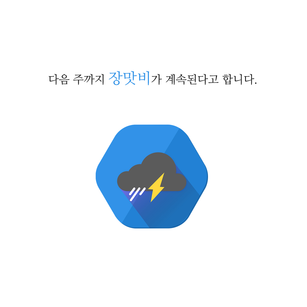 이번 주에도 장맛비가 계속 내린다고 합니다. 시설물 피해, 비 피해 입지 않도록 각별한 유의 부탁드립니다. 모든 가정의 평온과 행복을 기원하며, 오늘도 웃음 가득 행복 가득하셨으면 좋겠습니다.