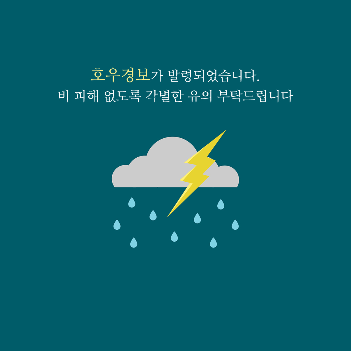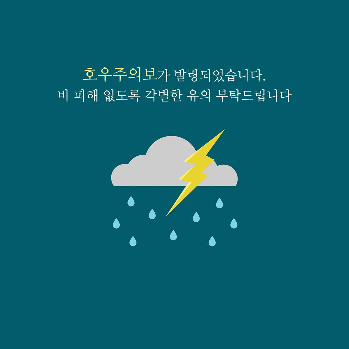 폭우 인사말 이미지 비피해 장맛비 안부 문자 또는 안부 인사를 전할 수 있는 여러 문구들을 만들었습니다.