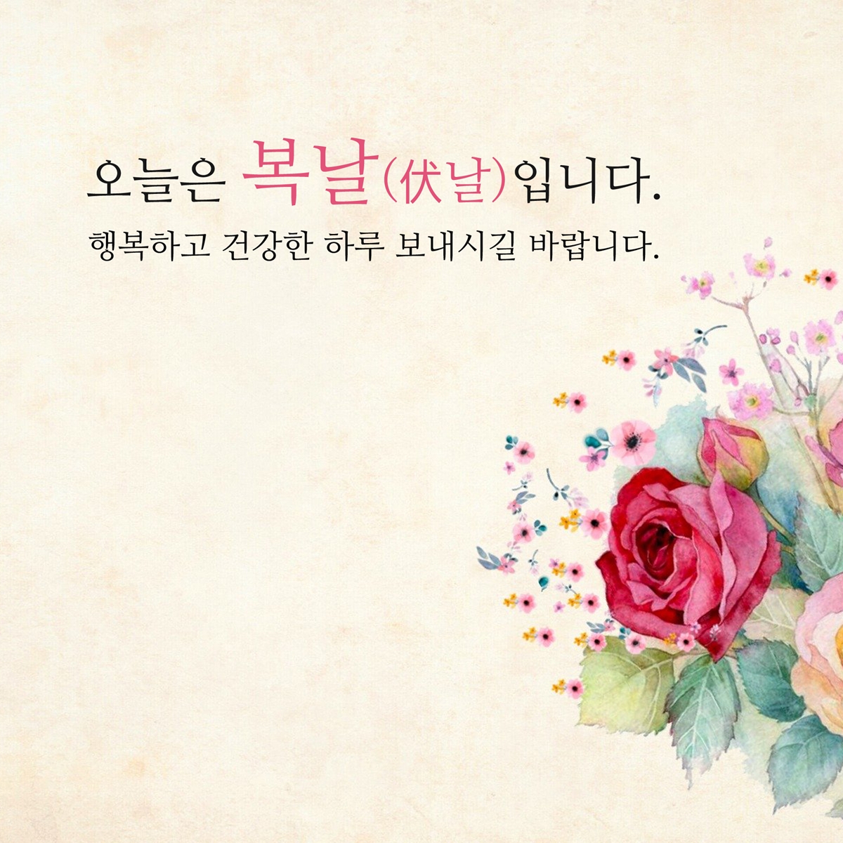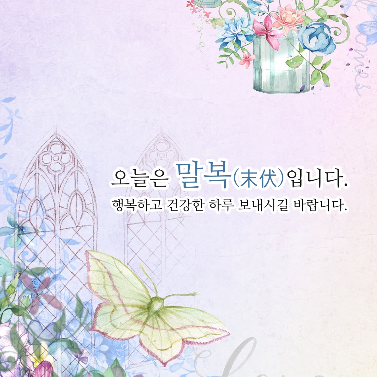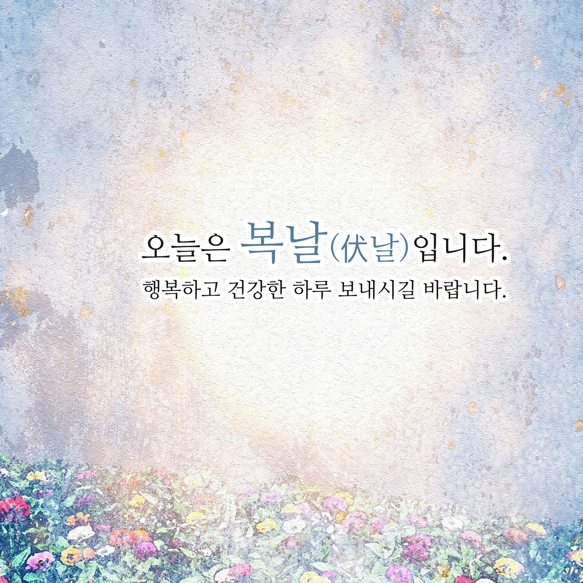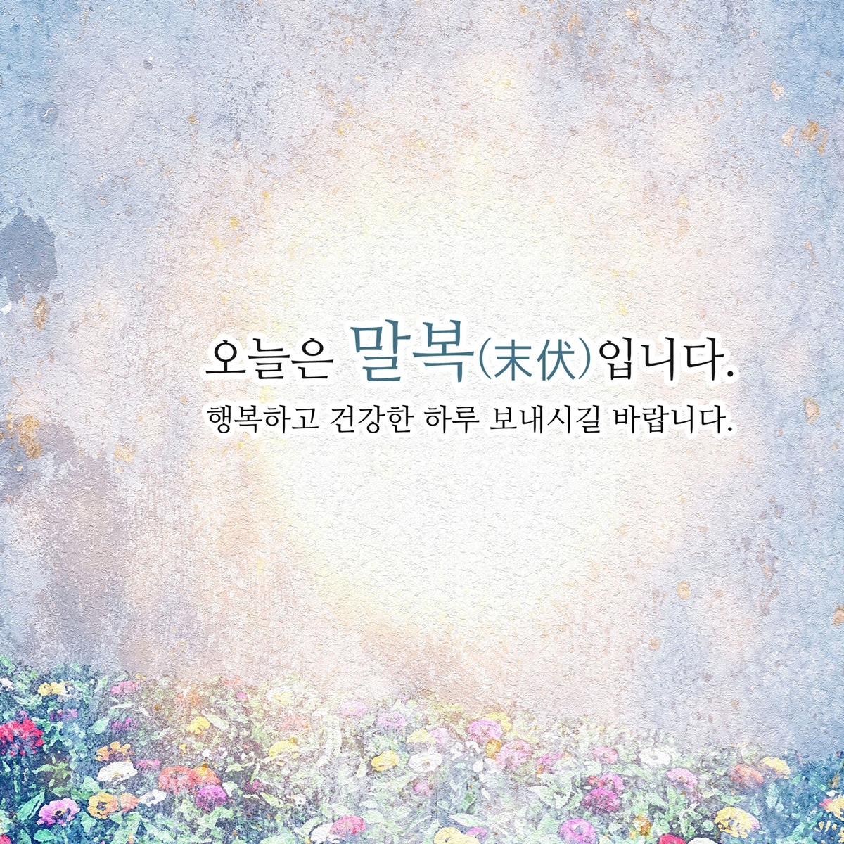 시간이 빠르게 흘러 어느덧 여름도 마지막 복날로 서서히 저물어가는 것 같습니다. 말복이니까 맛있는 음식 드시면서 기운을 내시는 것도 좋을 것 같습니다. 오늘도 활기차고 행복한 하루 보내세요.