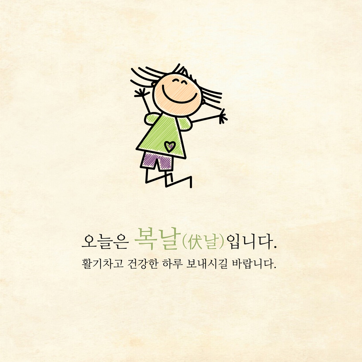 오늘은 말복입니다. 영양 가득한 건강식 챙겨 드셔서 남은 여름도 활기차고 건강하게 보내셨으면 좋겠습니다. 가족 모두의 건강화 행복을 기원합니다.
