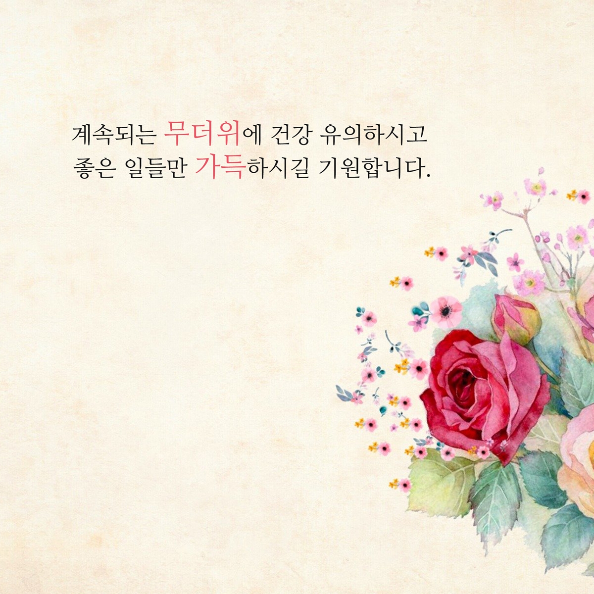 ■ 계속되는 폭염에 건강 유의하시고 좋은 일들만 가득하시길 기원합니다.