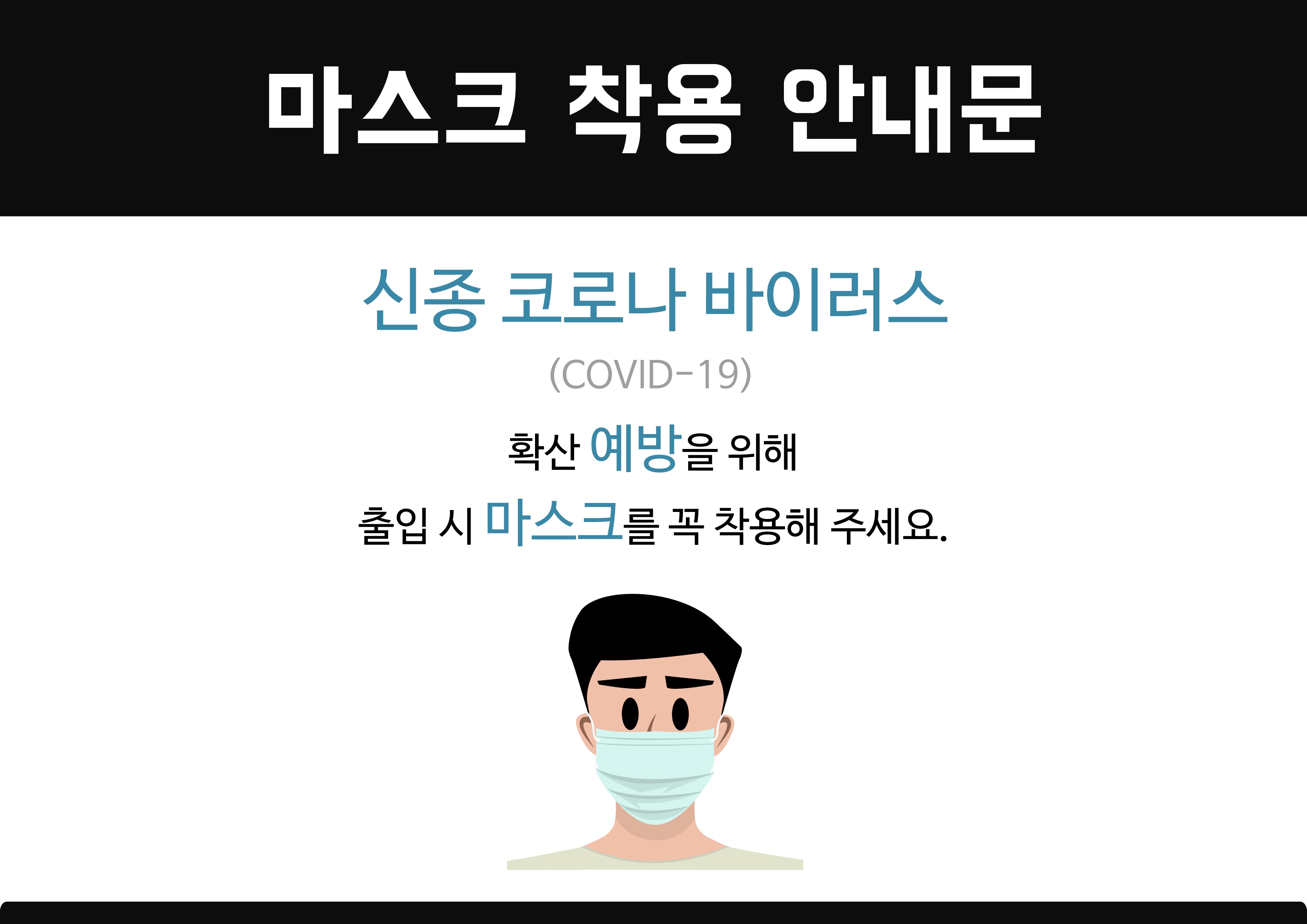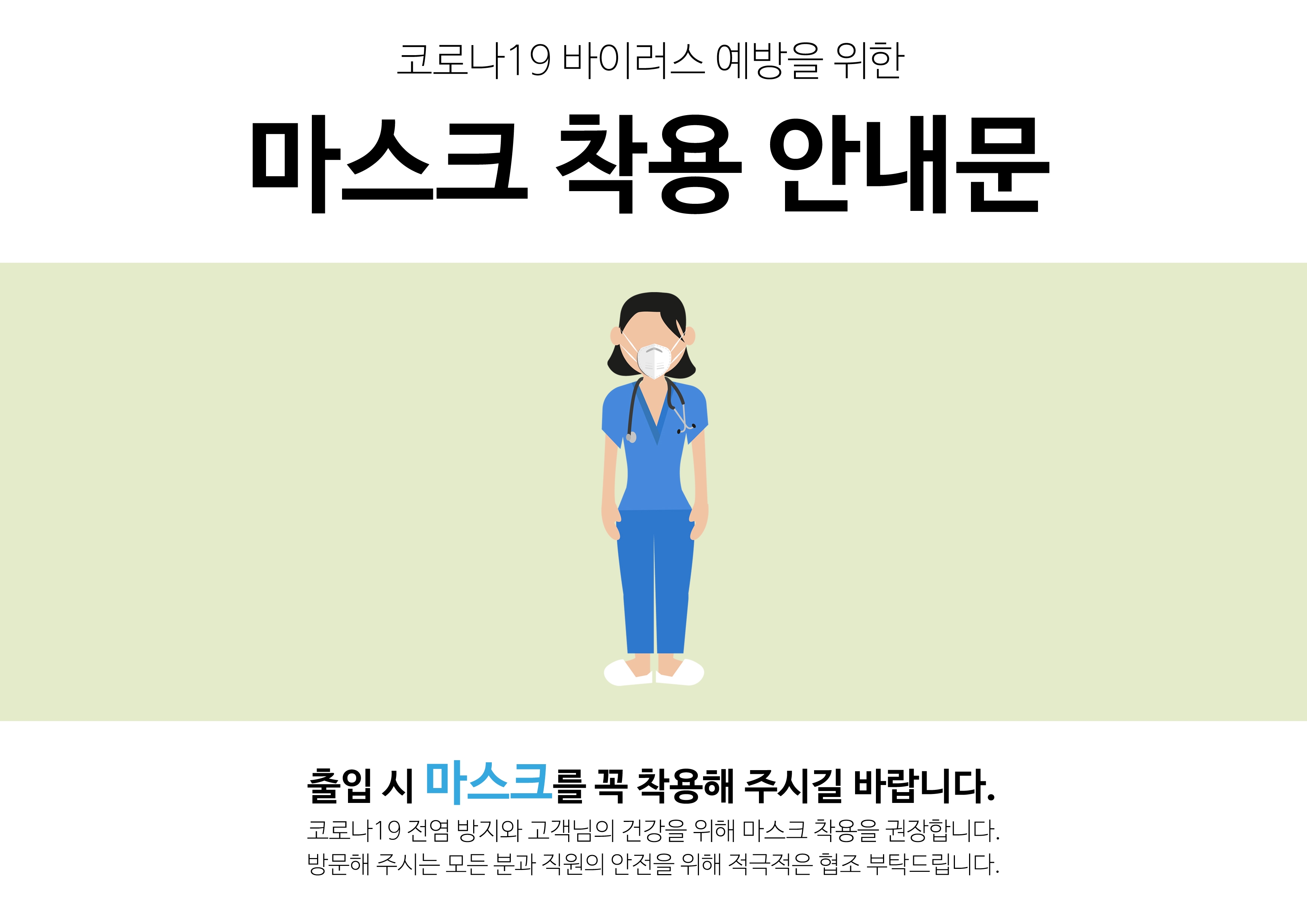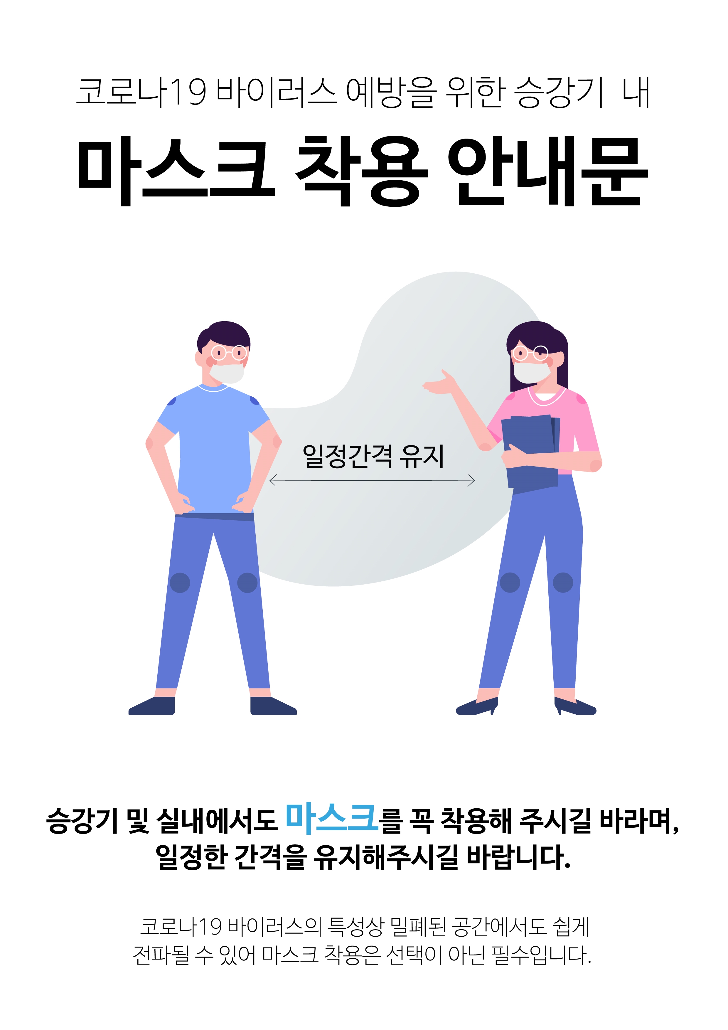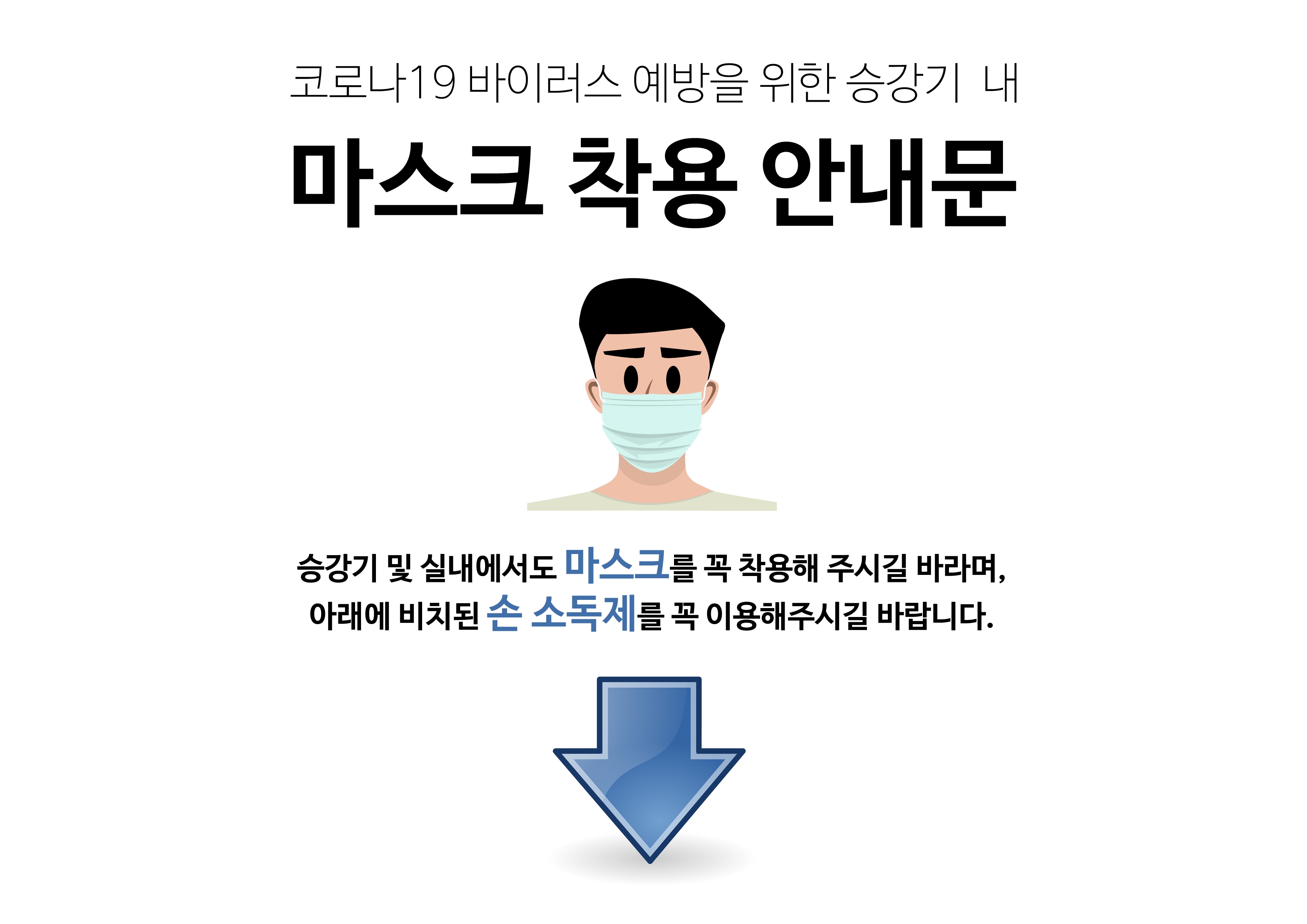병원 또는 아파트 승강기(엘리베이터) 및 어린이집이나 기타 카페나 매장 등 다양한 공간이나 근린 생활 시설에서 활용할 수 있는 마스크 착용 안내문을 제작을 했는데요.