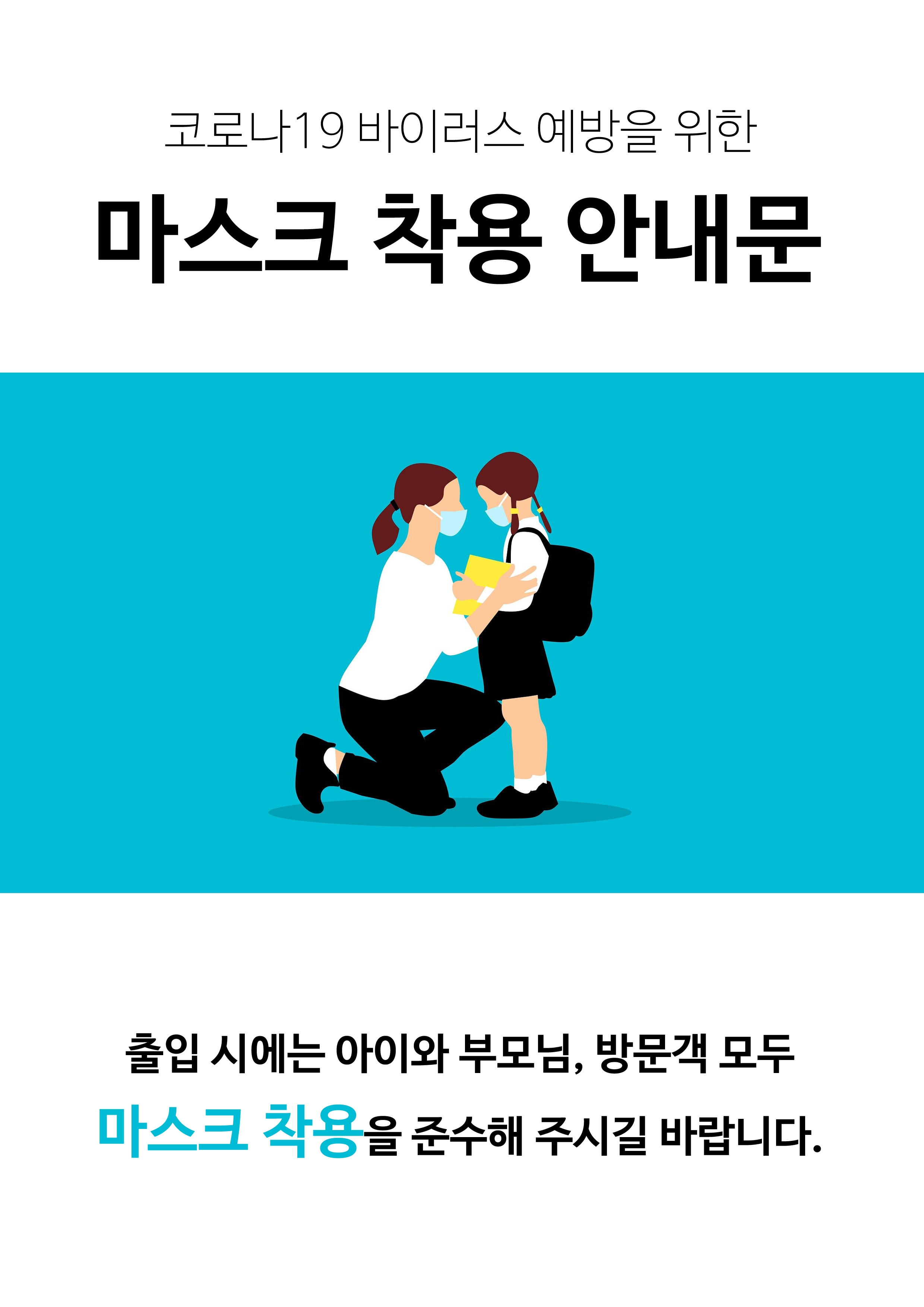 4 어린이집 전용 마스크 착용 및 손 소독제(세정제) 비치 안내문 (총 4가지 디자인)