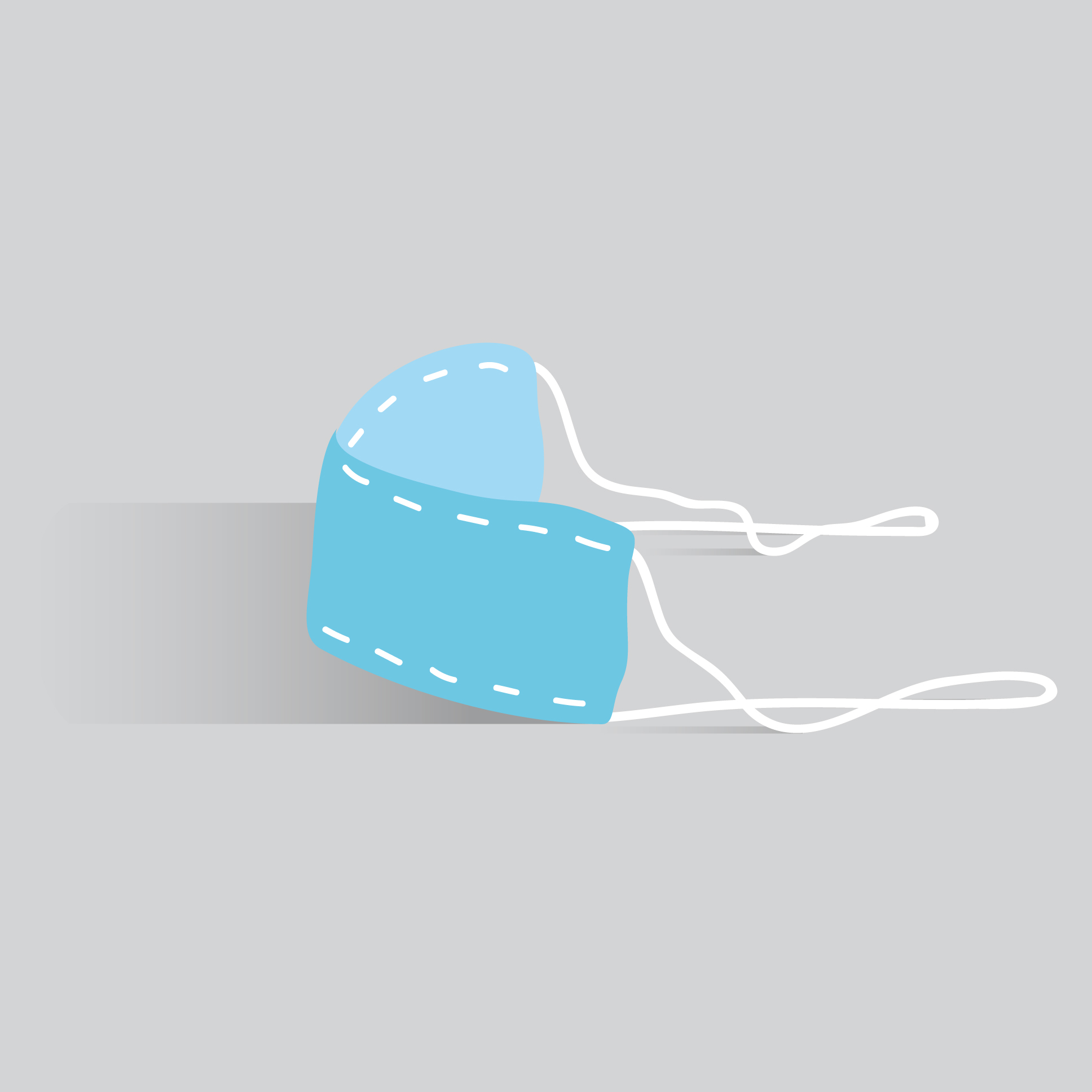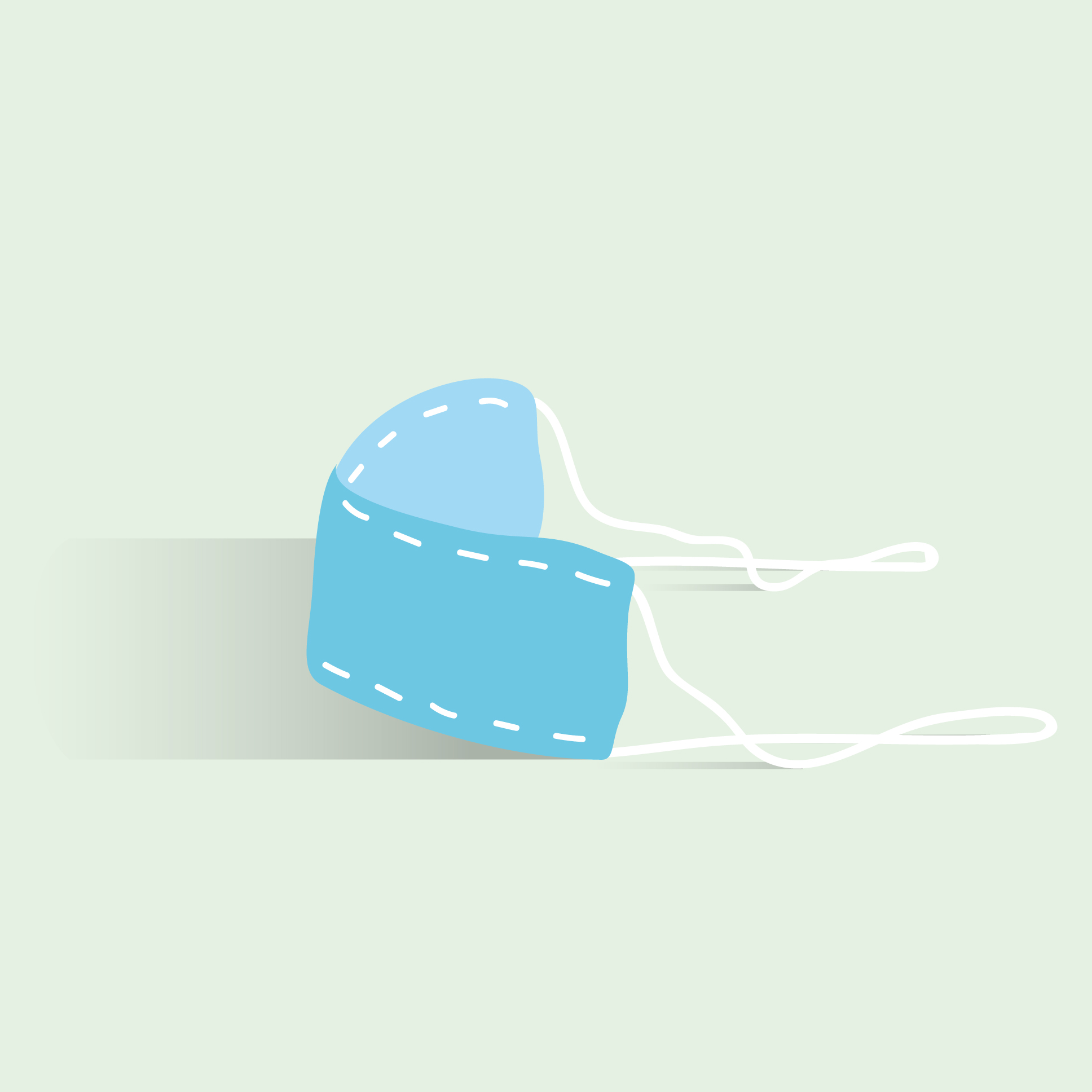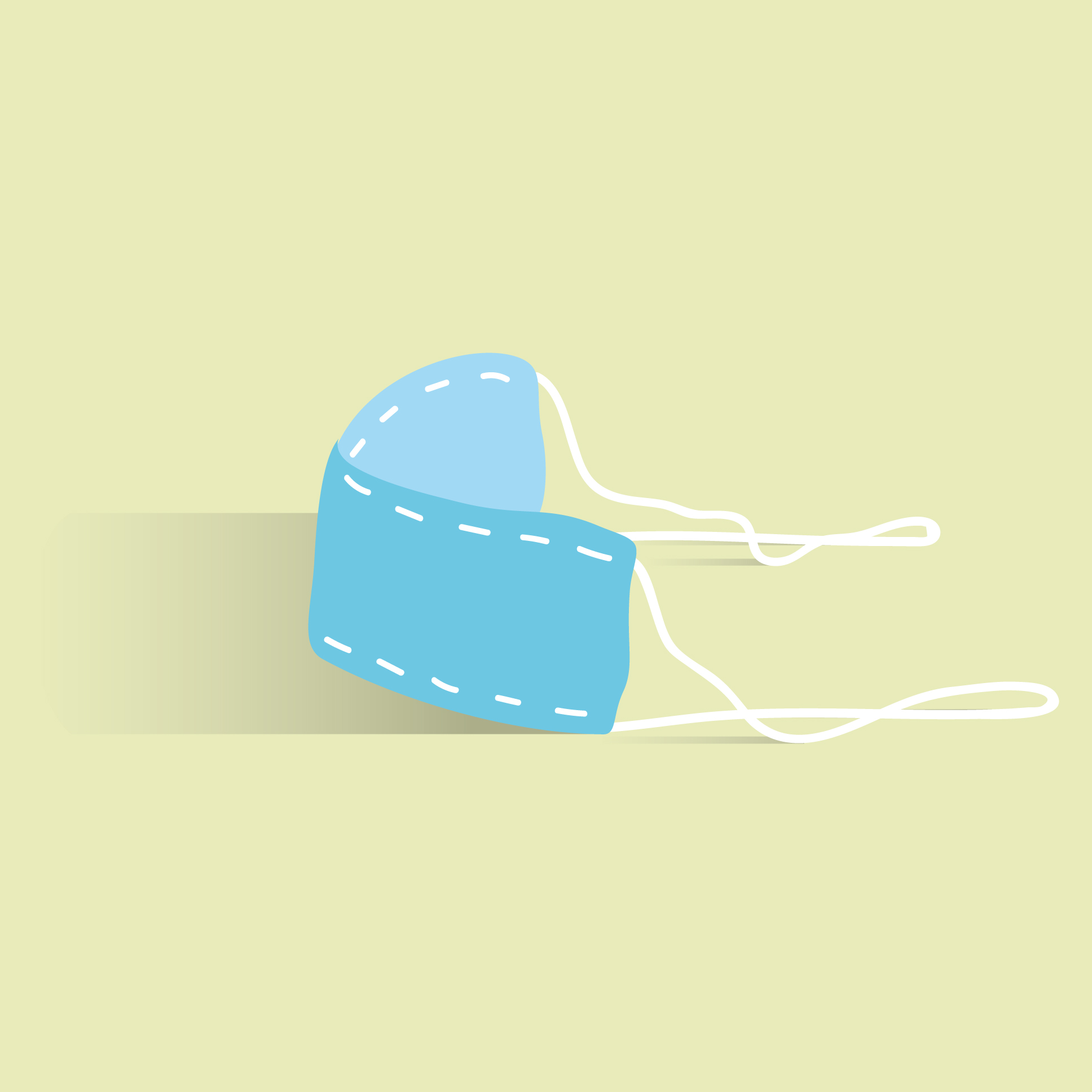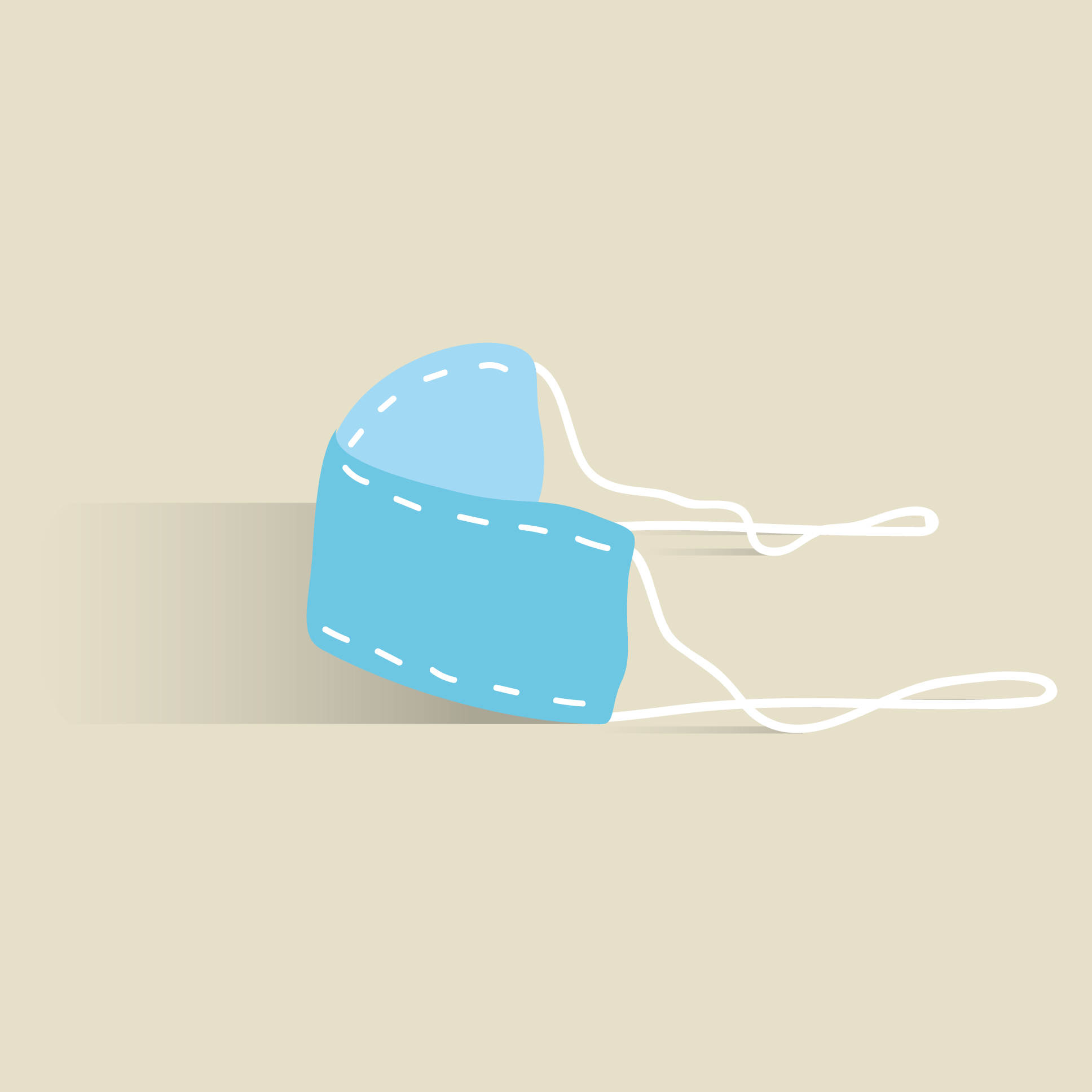 천에 마치 실을 꿰맨 것과 같은 형태로 하고 있는 마스크 그림입니다. 흰색 끈이 달려있고 천에 박음질이 되어있는 것 같은 느낌입니다.