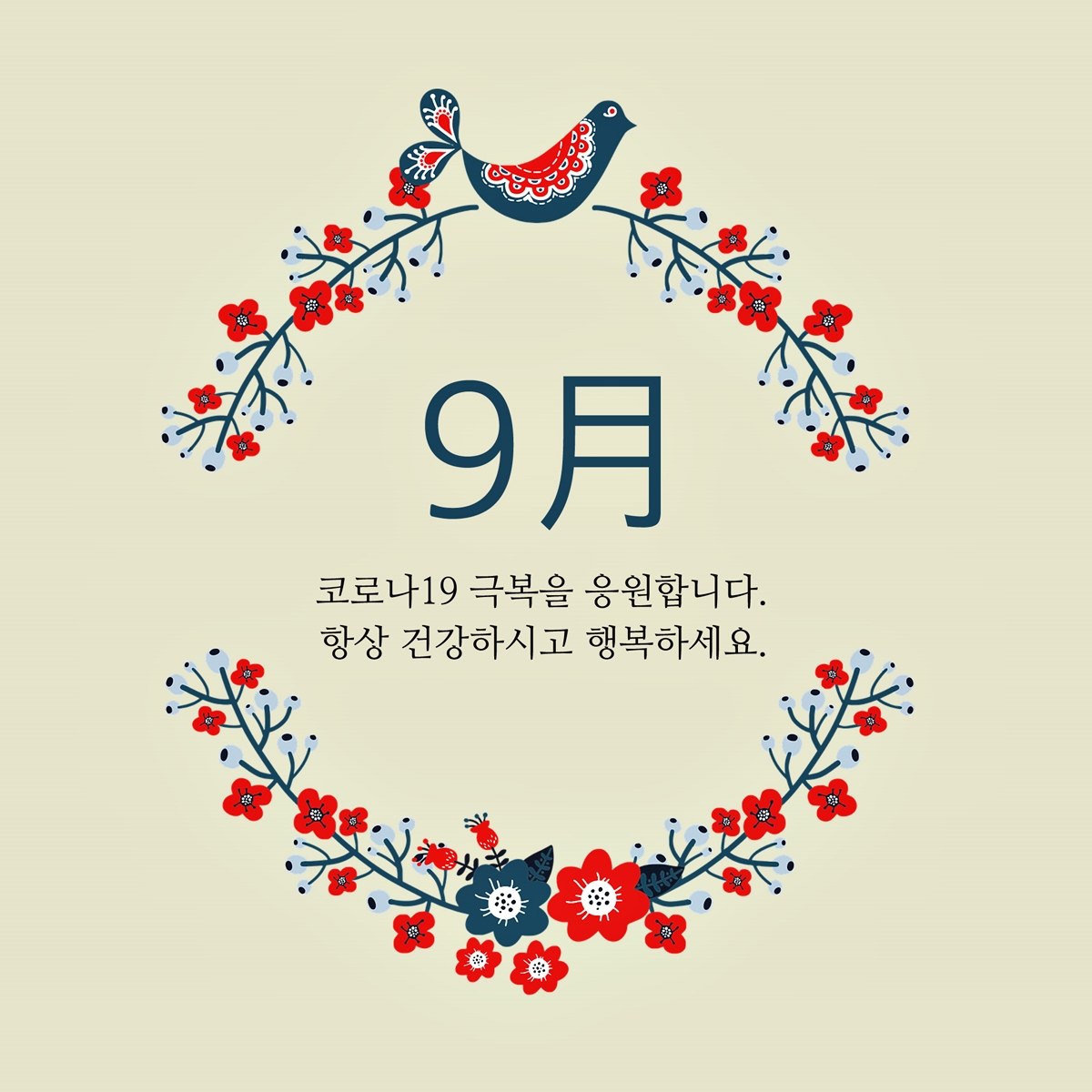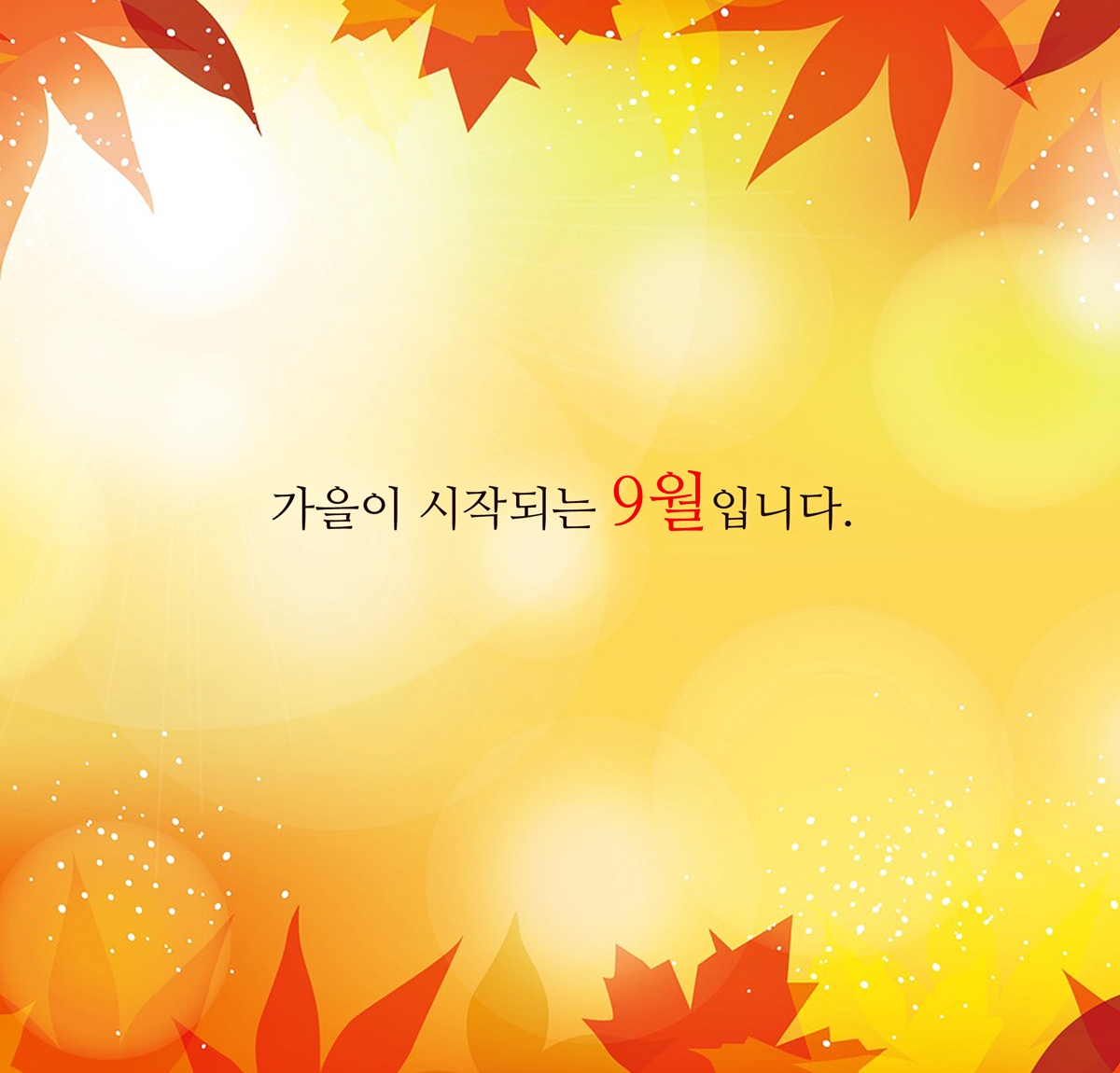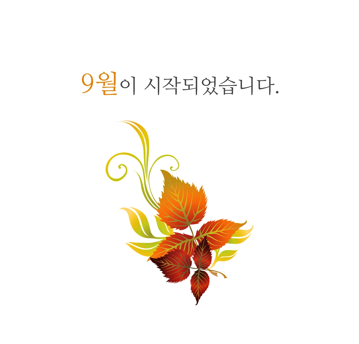 가을의 시작을 알리는 9월입니다. 새롭게 시작되는 이번 달도 새로운 마음가짐으로 좋은 일들이 가득하셨으면 좋겠습니다. 늘 건강하시고 행복하세요.