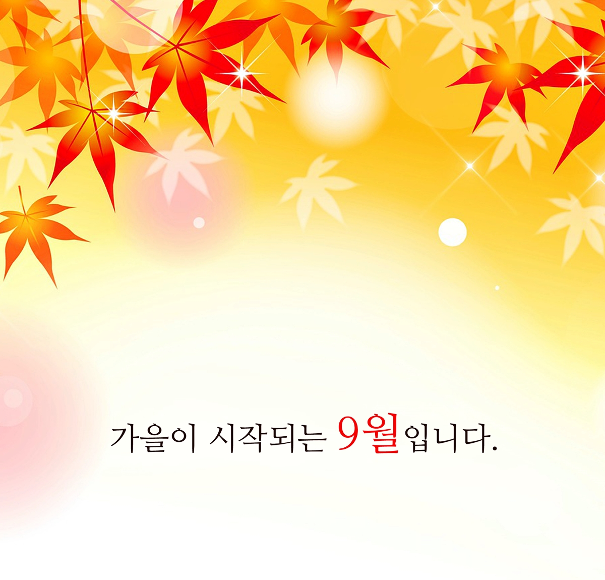 가을의 시작을 알리는 9월이 왔습니다. 뜨거움이 가득했던 여름이 지나가고 이제는 다시 시원함과 따뜻함이 느껴지는 이번의 가을 계절도 건강하시고 행복하셨으면 좋겠습니다.