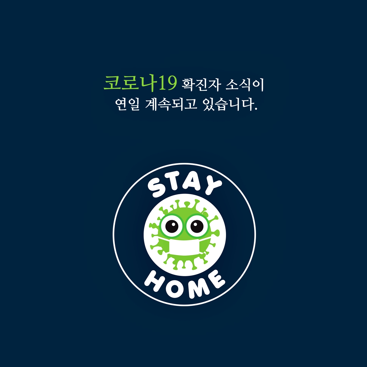 코로나19 확진자 소식이 연일 계속되고 있습니다. 외출 자제로 답답하시고 늘어나는 확진자 소식으로 불안감도 커져가는 시기입니다. 어려운 시기 따뜻한 마음으로 서로를 격려하며 잘 이겨냈으면 좋겠습니다. 항상 건강하시고 행복하시길 기원합니다.