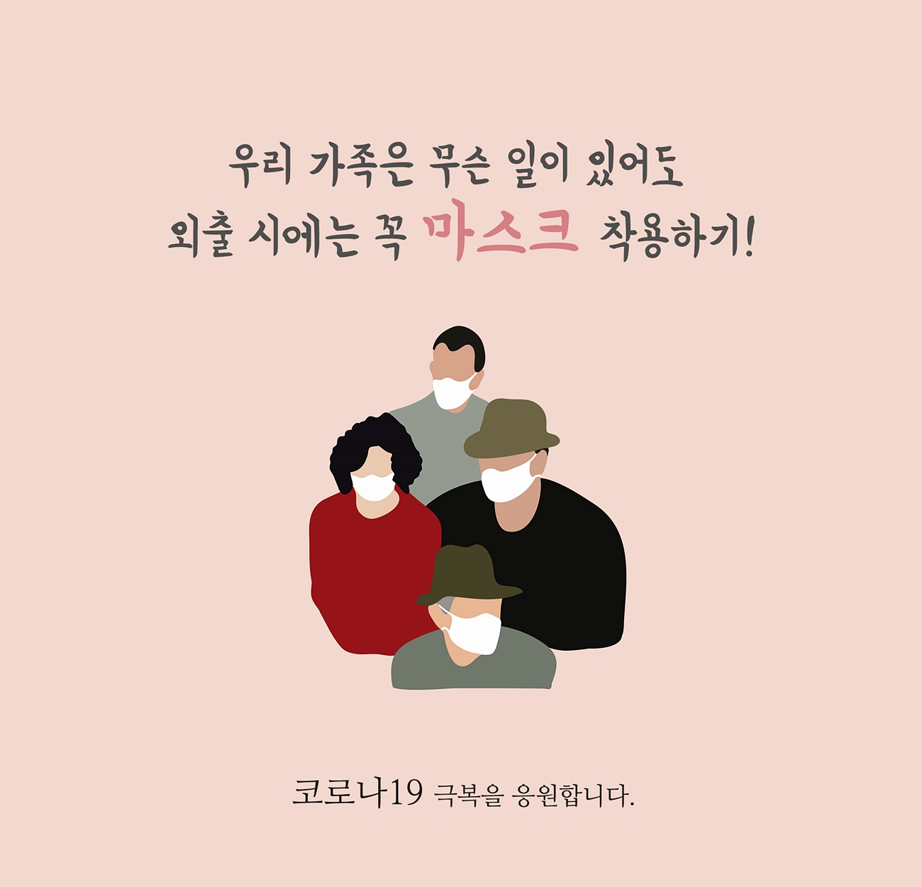 외출 시에는 모두가 하나같이 마스크를 써야 한다는 내용입니다.