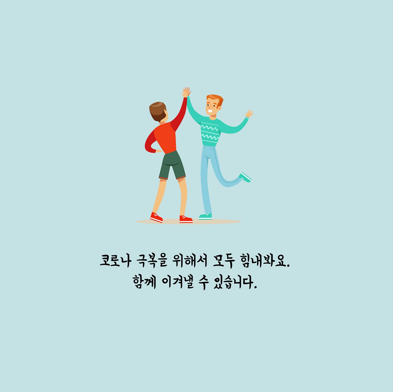 코로나 극복을 위해서 모두 힘내 봐요. 함께 이겨낼 수 있습니다.