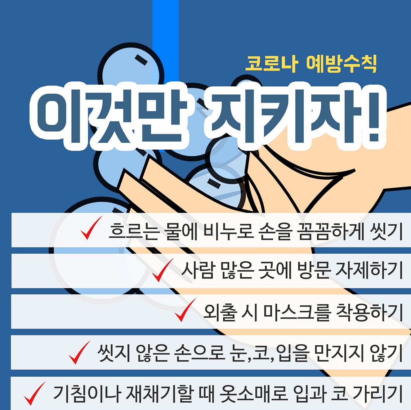 다음은 코로나 예방수칙 포스터 느낌의 이미지입니다.