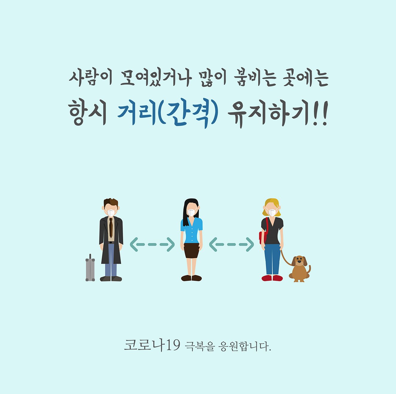 사람이 모여있거나 많이 붐비는 곳에는 항시 거리(간격) 유지하기!