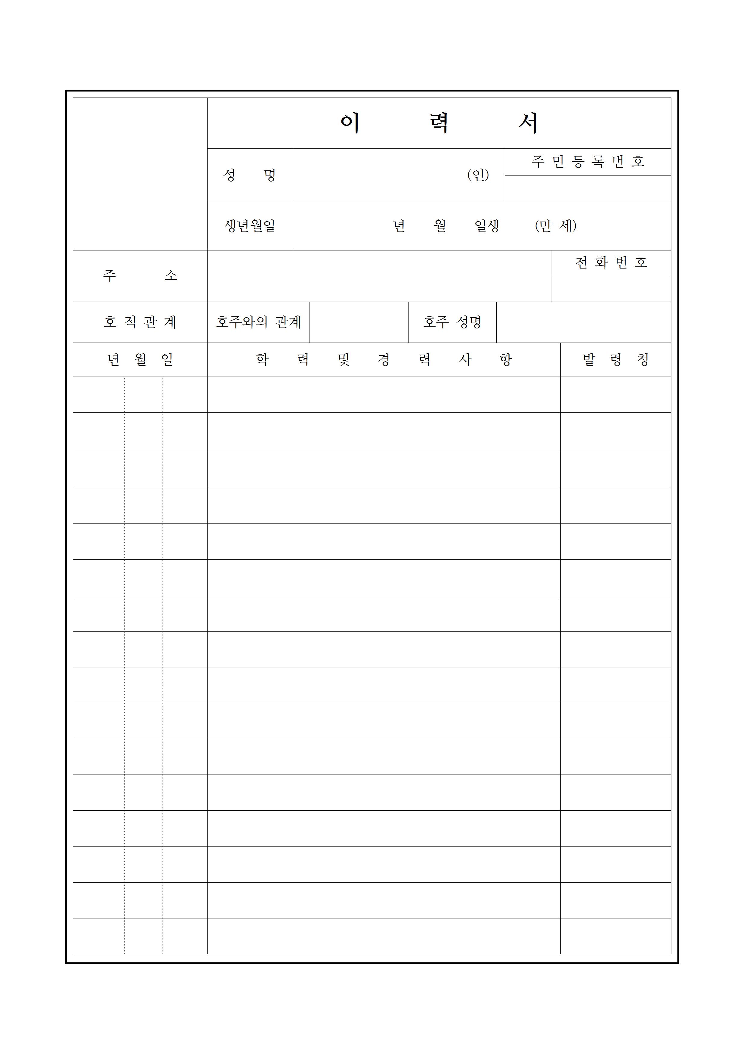 이력서 양식 hwp 한글 파일의 무료 다운로드 가능한 인기 5종을 모음으로 모아봤습니다.